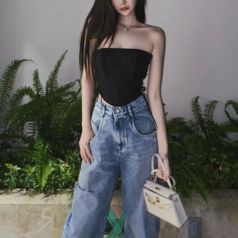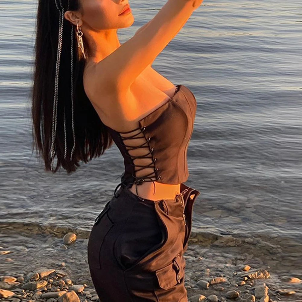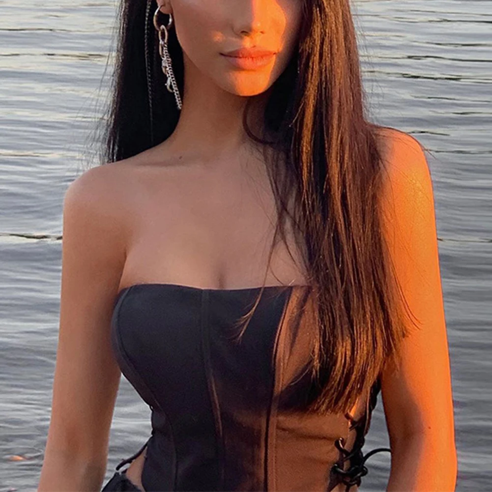 Сексуальные Клубные бандажные Топы на бретельках для женщин и девушек, без бретелек, с боковым вырезом, облегающий укороченный Топ для женщин, без рукавов, обтягивающий уличная майка