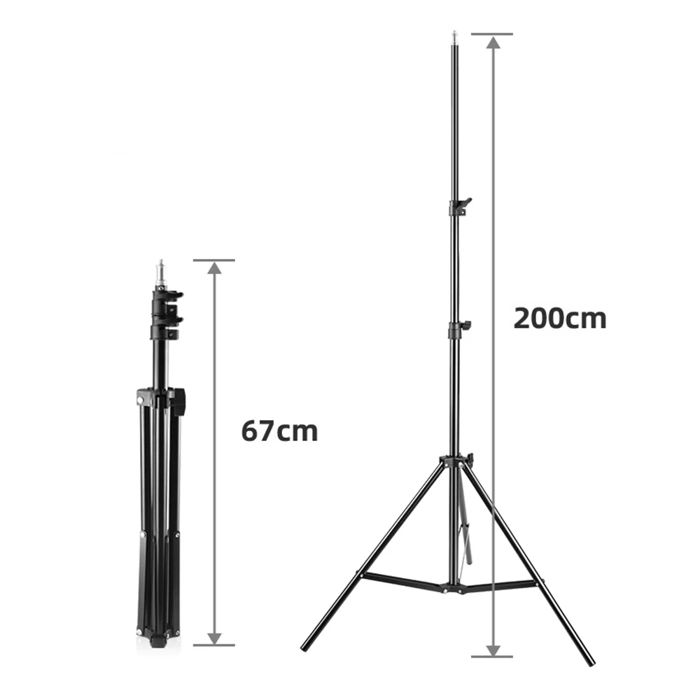 Регулируемая высота штатива составляет 68-200 см/26,7-78,7 дюйма, с верхним и нижним запорным соединением, легко регулировать высоту стойки, чтобы светильник соответствовал требованиям к съемке.