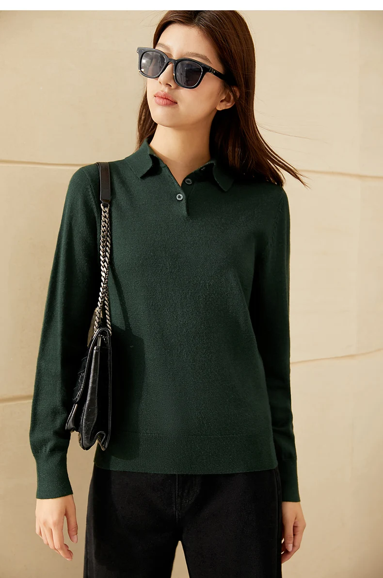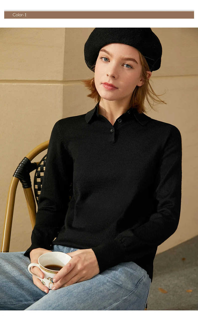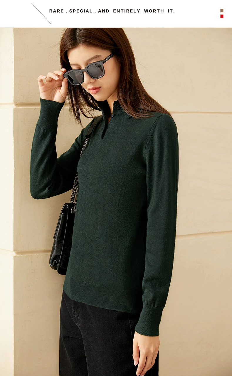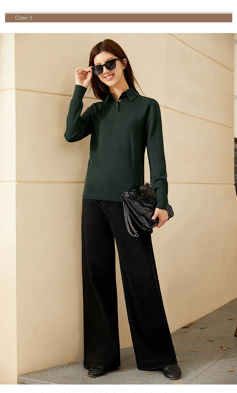 Женский трикотажный свитер с отложным воротником Длинный пуловер длинным