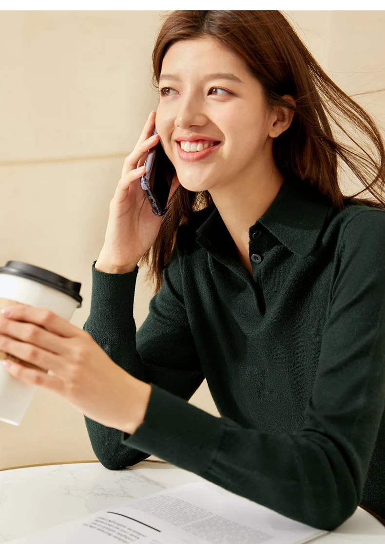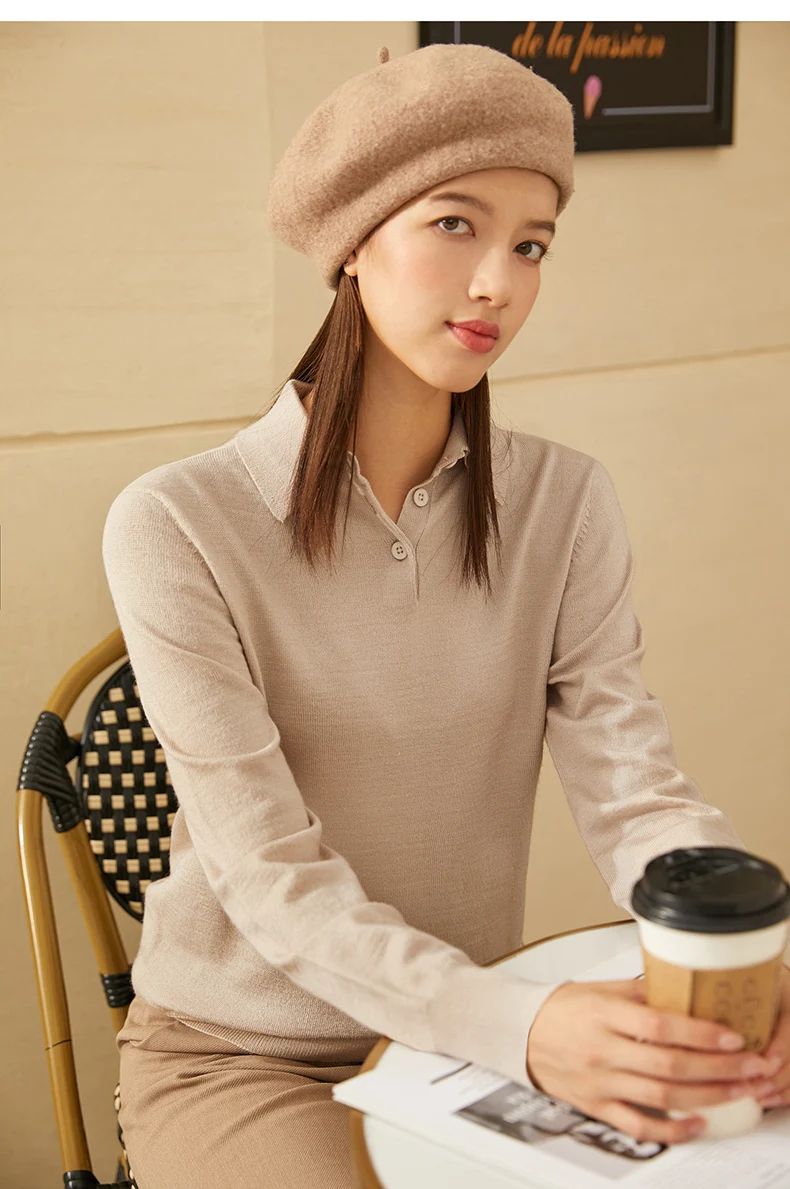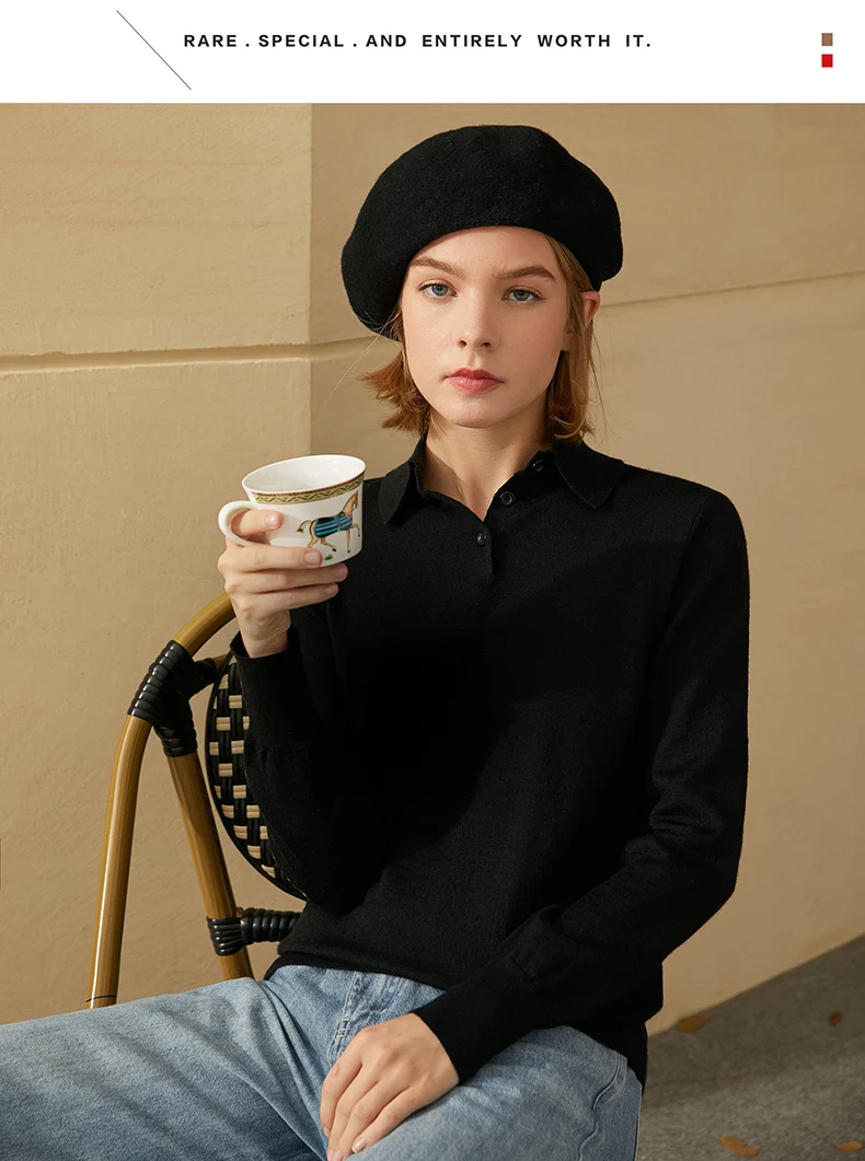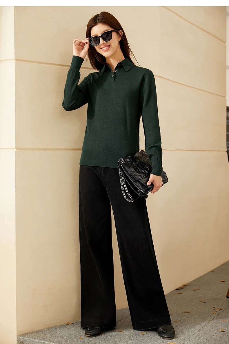 Женский трикотажный свитер с отложным воротником Длинный пуловер длинным