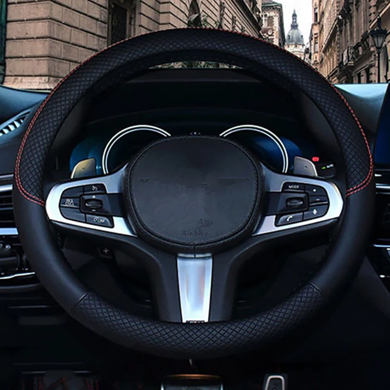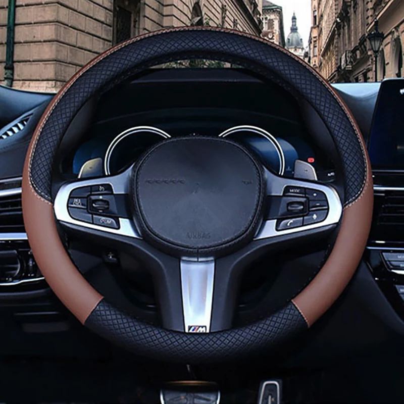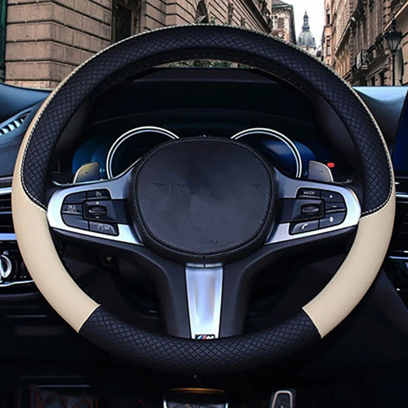38 см чехол рулевого колеса автомобиля универсальный кожаный чехол на руль, подходит для всех 99% моделей автомобилей аксессуары желтый