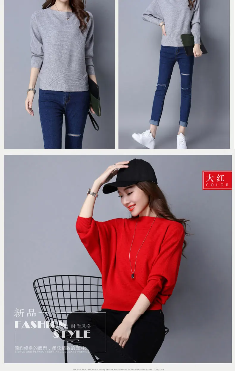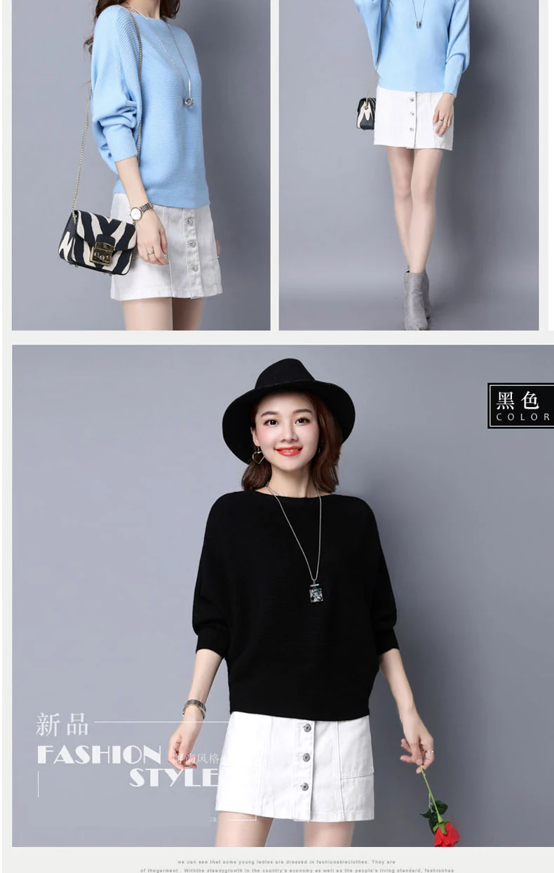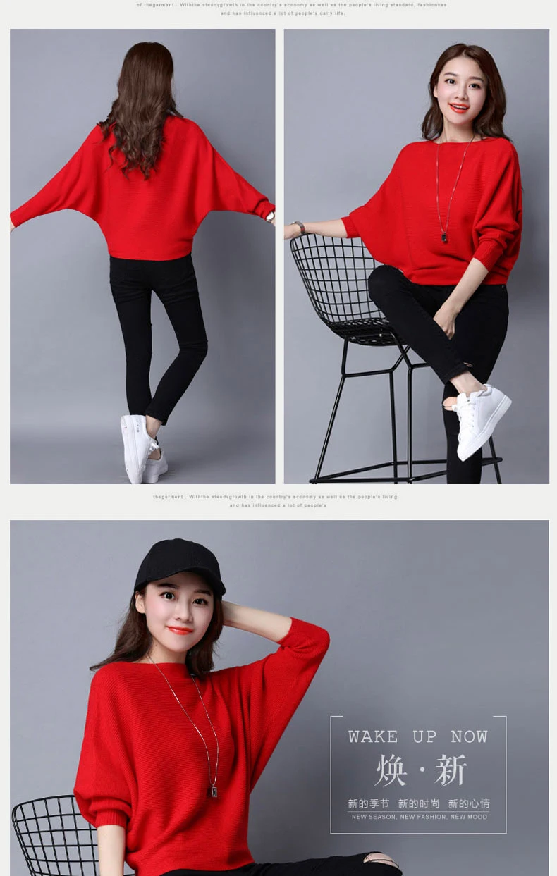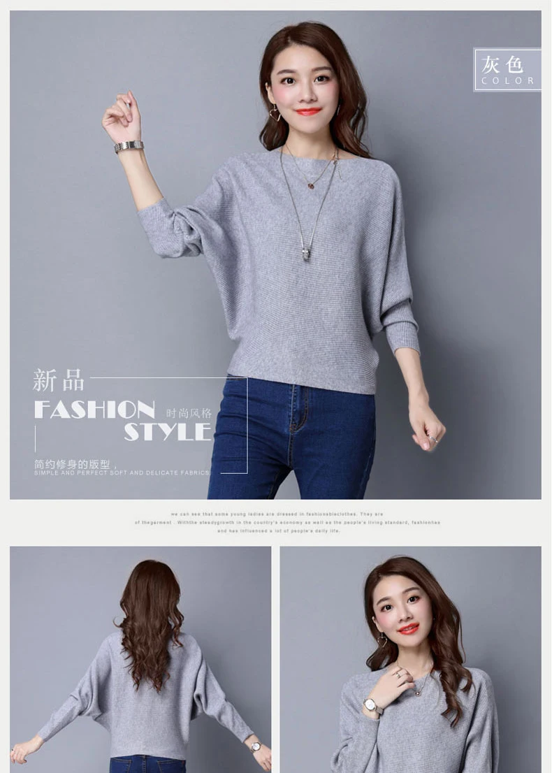 Bat sleeve sweater women 2020 autumn and winter wear new loose solid color pullover short long sleeve sweater bottoming shirt