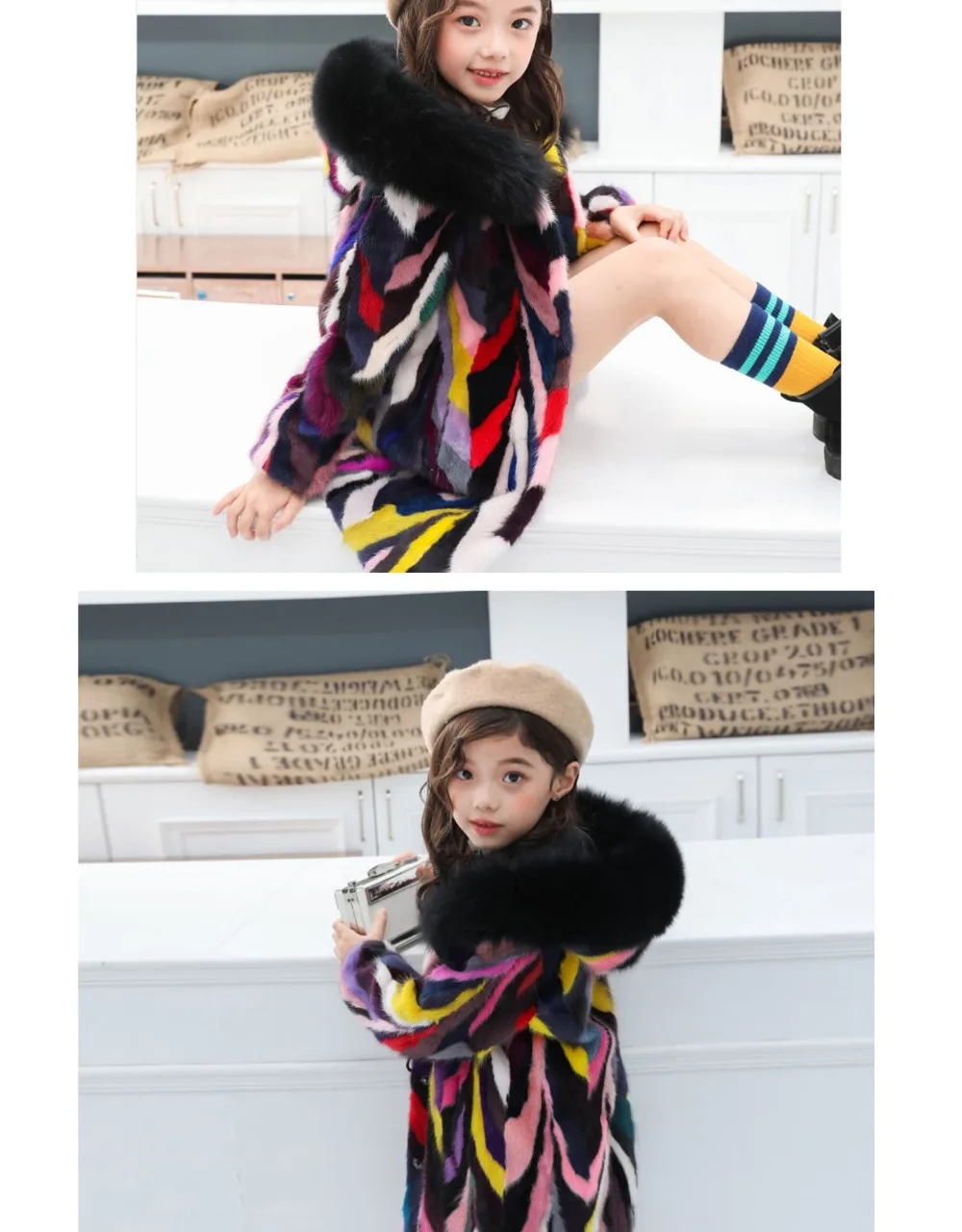 Это пальто изготовлено из небольших кусочков меха норки, каждая вещь будет иметь разницу в цвете. У вас нет двух пальто.