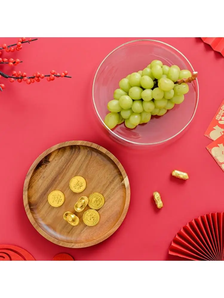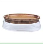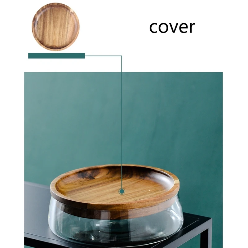 Креативная стеклянная коробка для хранения орехов и сухих фруктов, двухслойная коробка для хранения конфет с деревянной крышкой для дома, кухни