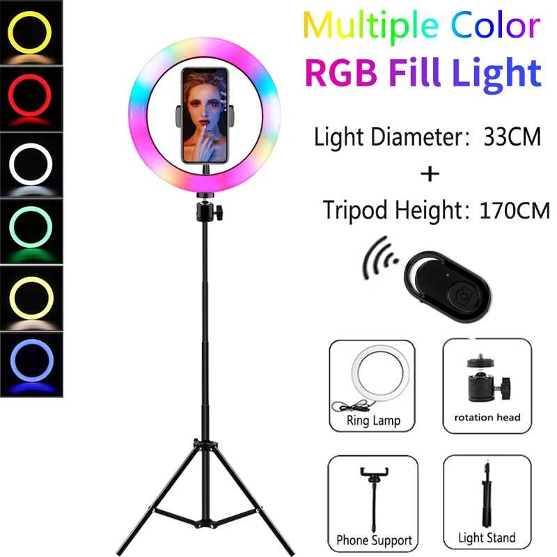 Характеристики: 1).10 режимов яркости. 2).10 цветов, плавный затемняющий светильник, белый светильник, теплый светильник, мягкий светильник. Зеленый, красный, фиолетовый, оранжевый, синий 3). Регулируемый светильник 170 см подходит для универсальных высоких и очень стабильных. 4). Со студией, чтобы заполнить светильник фото, портрет автоспуска заполняющий светильник. 5). Фотостудия кольцевой светодиодный светильник USB заглушка заполняющий светильник. 6). Подходит для многих социальных, таких как создание, видео в режиме реального времени, студийный светильник, фотография. Описание: Название товара: видео живое кольцо для селфи светильник Зарядка: usb-разъем Тип: кольцевой светильник с подставкой/кольцевой лампой для макияжа Регулируемая подставка для штатива: 37-170 см Светильник Размер: 33 см/26 см в Диаметр Материал: АБС-пластик Диапазон затемнения: 1%-100% Цветовая температура: 3200K-5500K Светильник источник света: высокое качество светодиодный SMD Мощность: 10 Вт Использование: продукт/рекламная фотография, прямой светильник, косметический светильник, видео-студия для макияжа Посылка включает 1: 1 * кольцевая лампа для селфи 1 * держатель для телефона 1*37-170 см штатив Отзывы: 1. Пожалуйста, оставьте положительный отзывы после получения посылки. 2. Если у вас есть какие-либо проблемы, сначала свяжитесь с нами.
