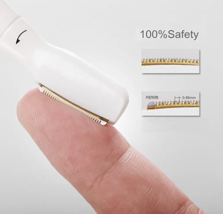 1. Точное формирование бровей С прецизионной Обрезной головкой, водонепроницаемость, пригодность и прижимание; 2. Беспроводной/Аккумуляторный Триммер-отлично подходит для лобковых волос, ног, зоны бикини, подмышек, тела, лица и других областей тела. 3. Легкое и безопасное удаление волос на лице с обычной Обрезной головкой для мягкой и шелковистой кожи. 4. Эффективная система бритья, 0,48 мм мелкозуб, движущееся лезвие с закругленными краями, 13000 оборотов в минуту. 5. Точные касания от головы до носка. Безопасная форма, обрезание или бритье нежелательных волос в любом месте и везде. Нет бровей, губ или линии бикини будут стоять между вами и этим идеальным видом. Посылка включает в себя: