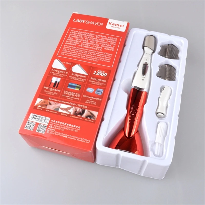 KM-8188, водонепроницаемая Мини электрическая бритва для волос, безболезненный триммер для бровей, носа, тела, бикини, эпилятор для удаления волос на лице для женщин