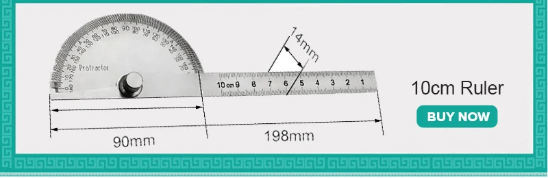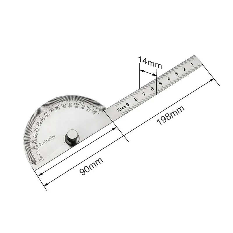 Общая длина: 198 мм Полукруглые Весы: 0-180 ° Размер: 0-100 мм Цвет: серебристый Материал: нержавеющая сталь Посылка: 1 х транспортир