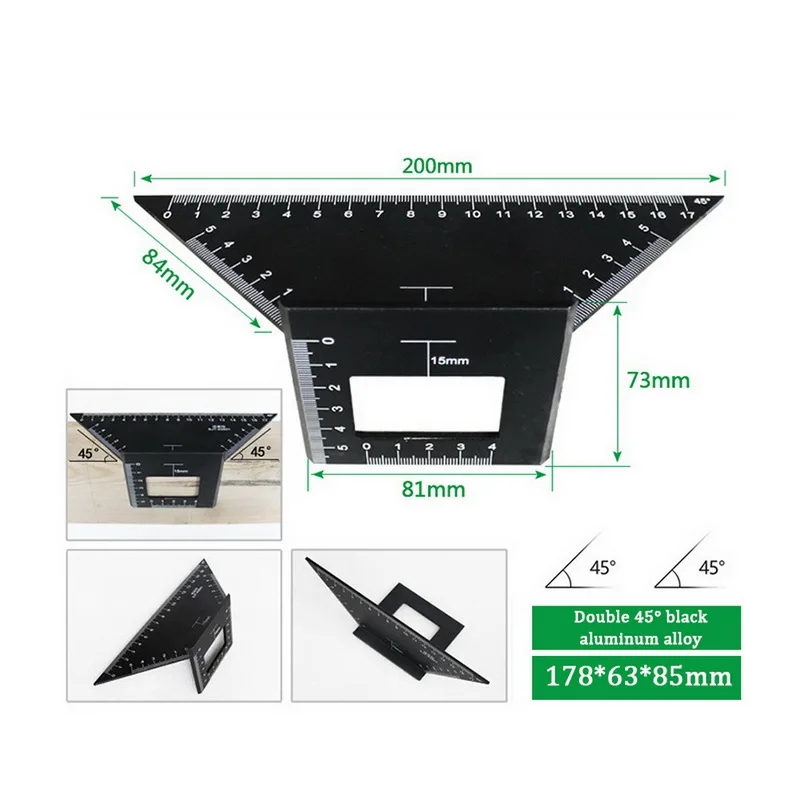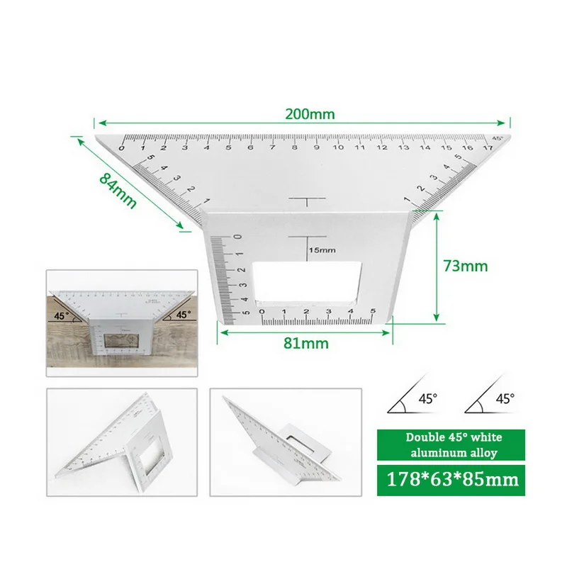 Цвет: зеленый/темно-серый Размер изделия: 65*70*200 мм Материал: АБС-пластик Вес изделия: 65 г Посылка: 1 * измерительный инструмент, 1 * плотник карандаш --- Измерение: предназначено для измерения трехмерных элементов: древесины, труб и так далее. --- Калибр: Может использоваться в качестве маркировочного датчика для параллельных линий. --- Размеры углов передачи: 45 градусов и 90 градусов углов. --- Сверло: также может использоваться в качестве сверла для определения диаметра сверла. --- Эффективность работы: повышение эффективности работы и экономия времени с помощью деревообрабатывающих проектов. --- Компактный дизайн: независимо от того, находитесь ли вы в офисе, дома или где-то, этот портативный и легкий измерительный инструмент удобен для переноски, вы можете положить в сумку для инструментов, ящик для хранения инструментов, это не займет места. --- Использование: отличный подарок или инструмент для деревянного работника, DIY проектов, дома и так далее