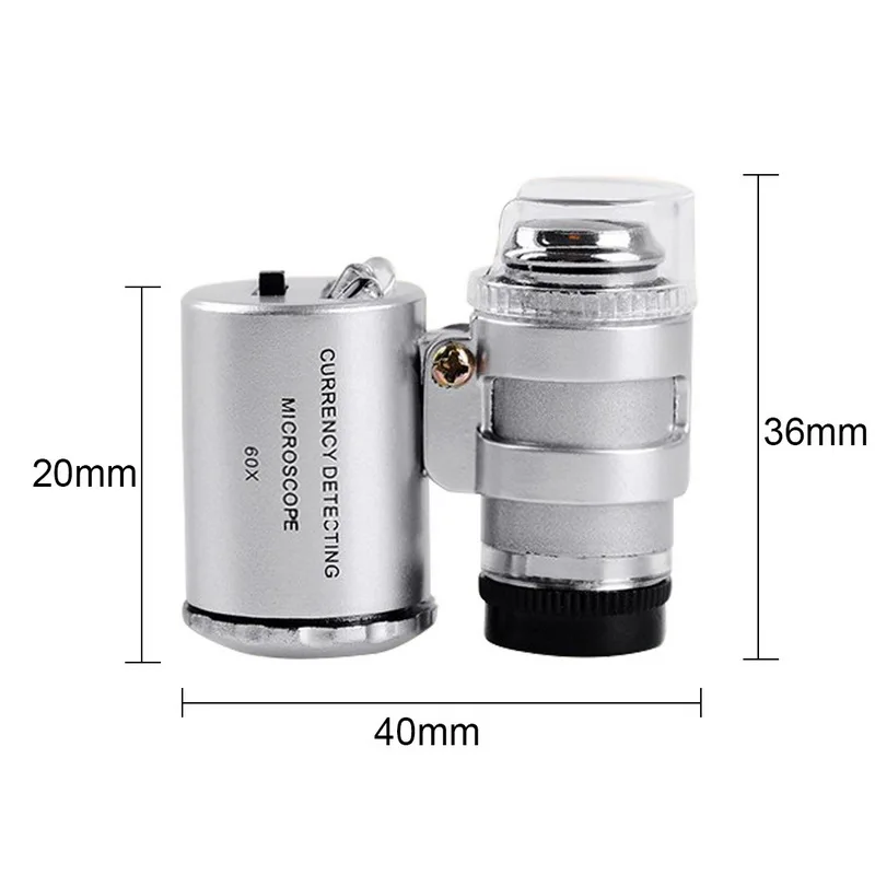 Комплектация: 1 чехол из искусственной кожи, 1 Мини микроскоп 60x, руководство пользователя