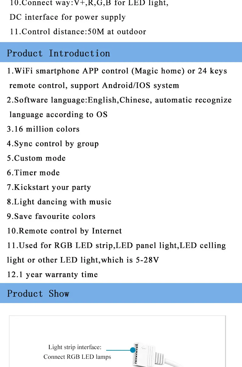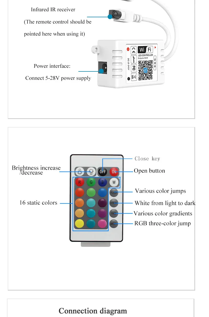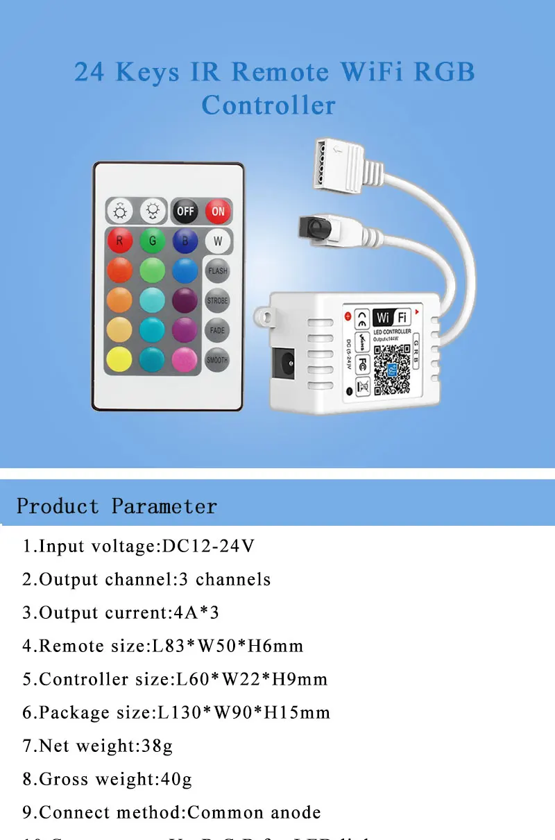 Упаковка включает: 1 * контроллер 1 * пульт дистанционного управления (поставляется без батарей)