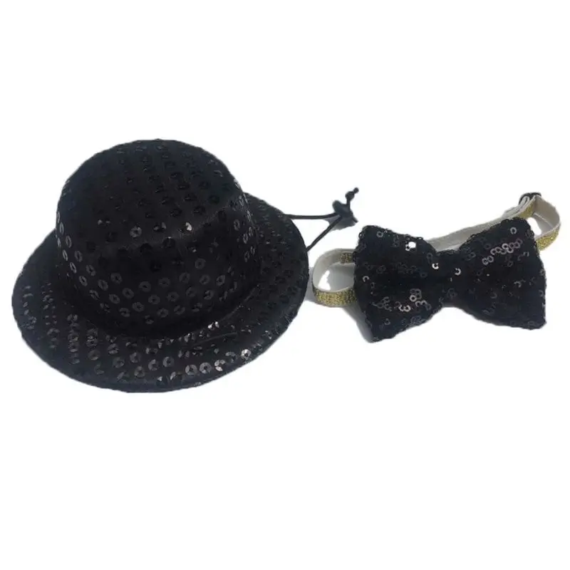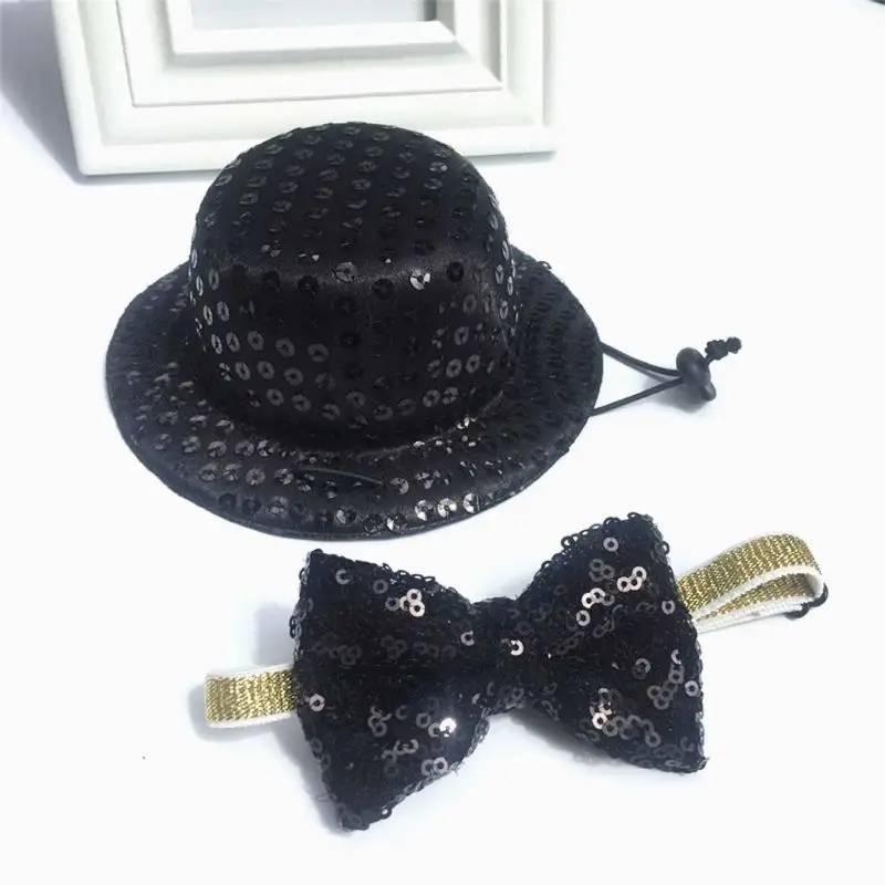 Маленькая Собака черная расшитая блестками цилиндрическая шляпа с галстуком-бабочкой, набор костюмов для домашних животных, праздничный дорожный декор, аксессуары для воротника