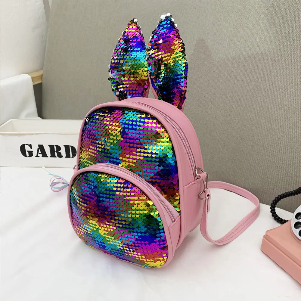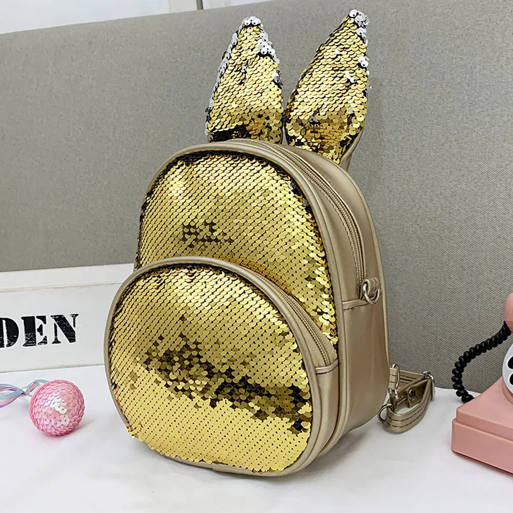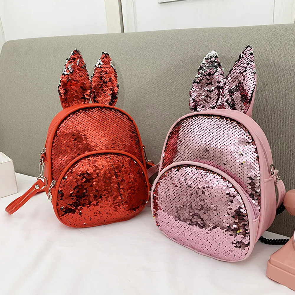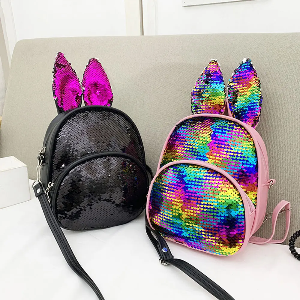 Новый модный детский рюкзак с заячьими ушками и блестками