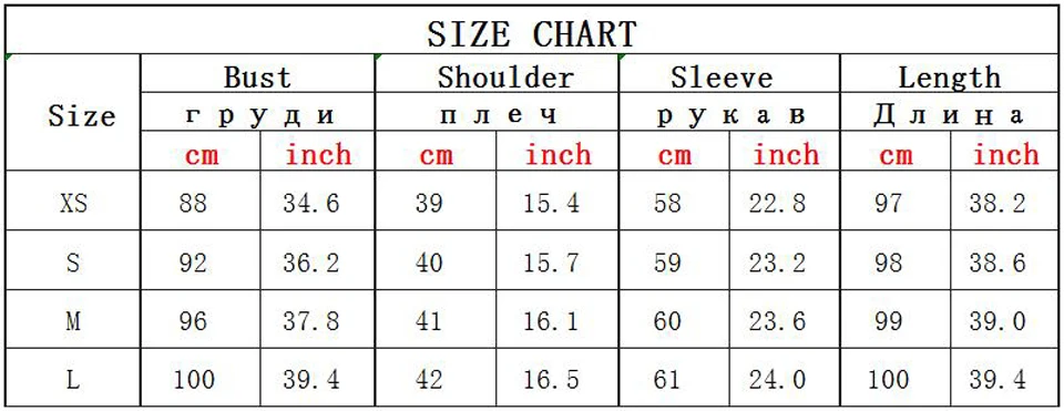 Примечание: 1. Пожалуйста, строго следуйте таблице размеров для размера. Не выбирайте напрямую в соответствии с вашими привычками. 2. Размер может отличаться на 1-3 см в зависимости от измерения вручную. Обратите внимание, в меру.(1 см = 0,39 дюйма; 1 дюйм = 2,54 см)
