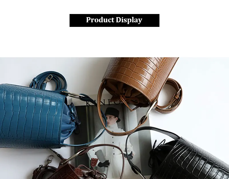 Винтажная Повседневная Сумка-ведро для женщин, сумка через плечо с крокодиловым узором, качественная кожаная сумка, большая сумка-тоут, популярный стиль, сумка-баррель