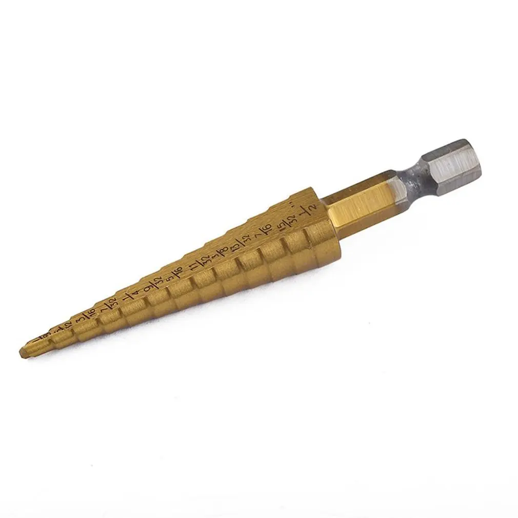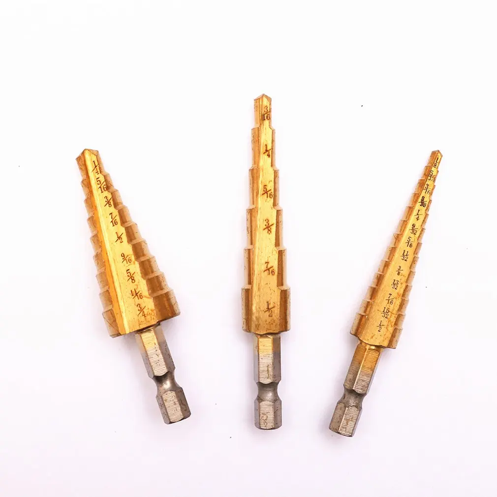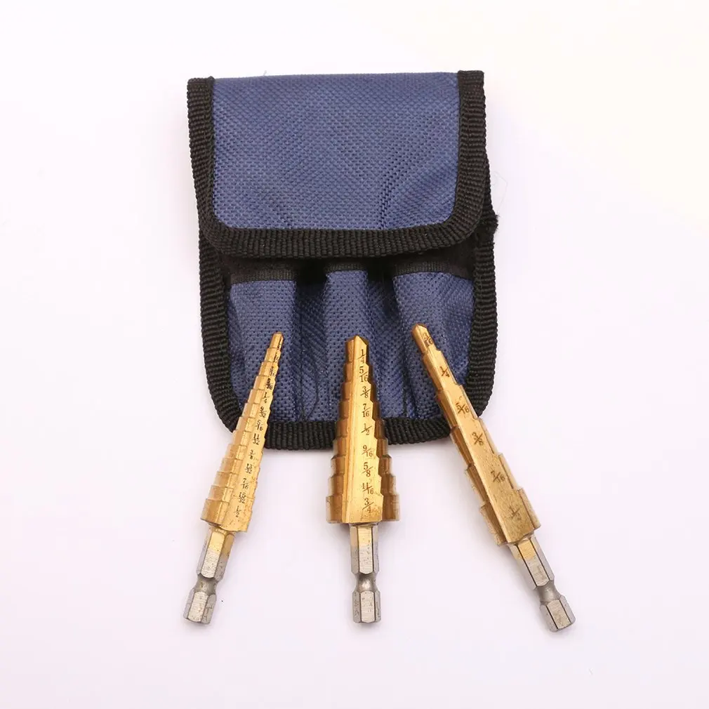 Особенности: 1. Прочный: прочный и прочный, он изготовлен из металла и не легко сломан. 2. Многофункциональность: ступенчатые сверла из титана для металла, цветных металлов, пластика, дерева. Описание: Используется для открытия отверстий в дереве, пластике, тонкой железной пластине, тонкой алюминиевой пластине и т. д. Характеристики: Материал: высокоскоростная стальная 4241 Размер: 3/16-1/2 (3-12 мм), 1/4-3/4 (4-12 мм), 1/8-1/2 (4-20 мм) Обработка поверхности: титан Вес: 100 г Цвет: Золотой Посылка включает в себя: 1 * ступенчатое сверло HSS 3/16-1/2 (3-12 мм) 1 * ступенчатое сверло HSS 1/4-3/4 (4-12 мм) 1 * ступенчатое сверло HSS 1/8-1/2 (4-20 мм) 1 * тканевый мешок