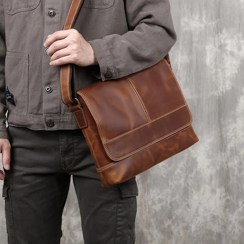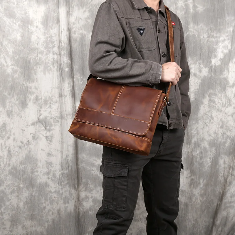 Винтажные мужские сумки-мессенджеры из натуральной кожи Crazy Horse A4