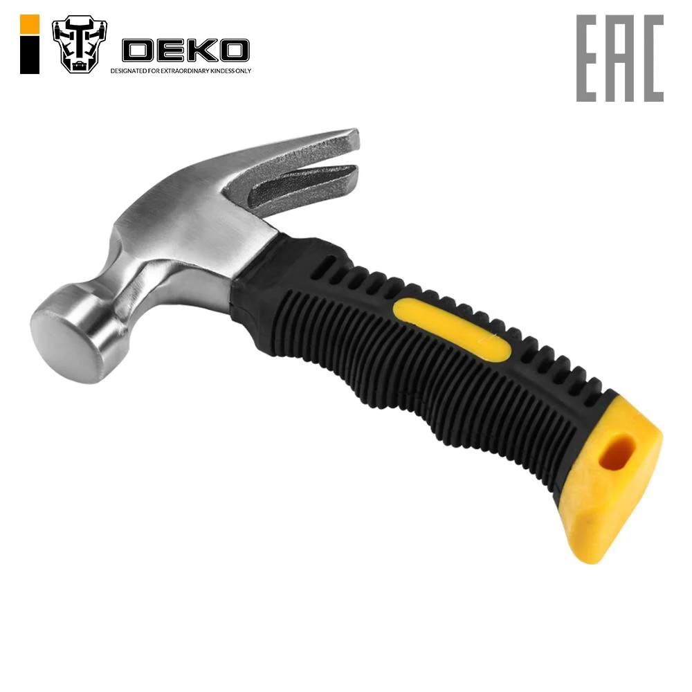 The Deko non-stick hammer is a manual tool for mechanical, joinery and dismantling. Made of all-metal workpiece. Combines a flat working part, on one side and bent nails, on the other. The nails have sharp ends and are sharpened from the inside, which allows you to remove the nail, which has completely gone into the product. The working parts are subjected to induction quenching. The rubberized handle does not allow the tool to slip out of the hands and muffles vibration during impact, the hands get less tired.
