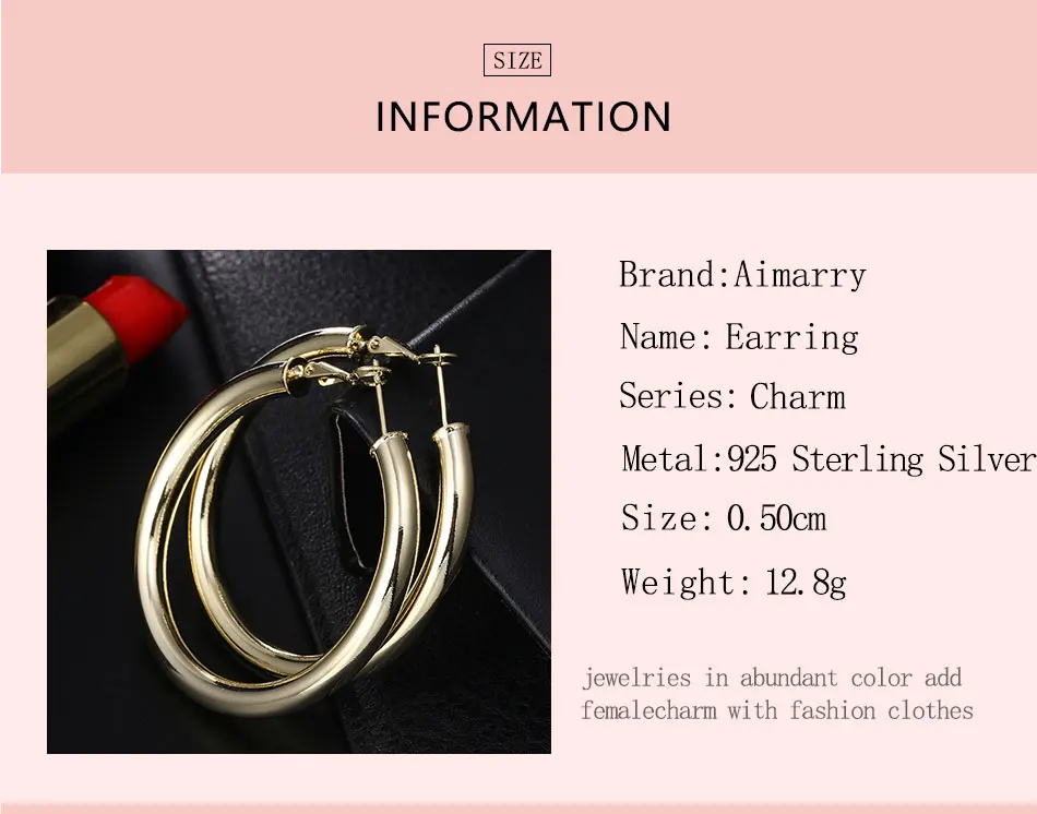 Женские серьги-кольца Aimarry, из стерлингового серебра 925 пробы, 18 К золота, 50 мм, вечерние, рождественские подарки, свадебные модные ювелирные изделия