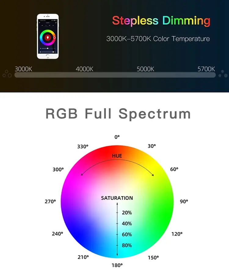 1. Особенности RGB позволяют выбирать между различными цветными лампами