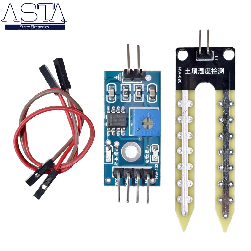 2 модуля в влажности почвы меньше установленного порогового значения, когда выход DO port высокий, когда влажность почвы превышает пороговое значение, модуль D0 выход низкий;