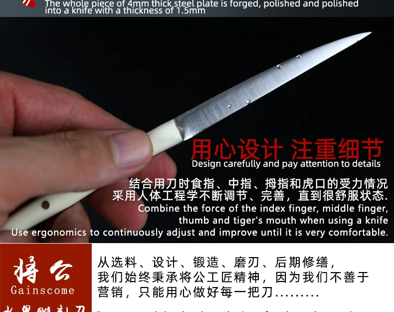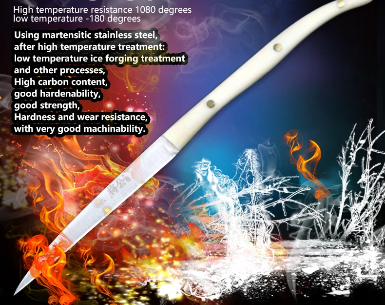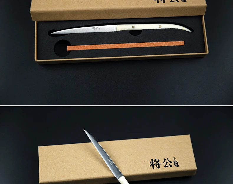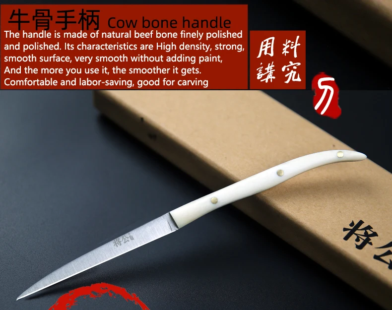 Сталь: 5Cr15 молибденовая ванадиевая сталь-Высокоскоростная сталь, высокоскоростная Передняя сталь, резкость, высокая твердость, высокая гибкость и долговечность Режущая кромка: Двусторонняя косая шлифовка и режущая кромка! Режущая кромка sharp. Ручка: натуральная ГОВЯЖЬЯ кость, прочная, высококачественная, с коллекционной ценностью (подходит для подарков)