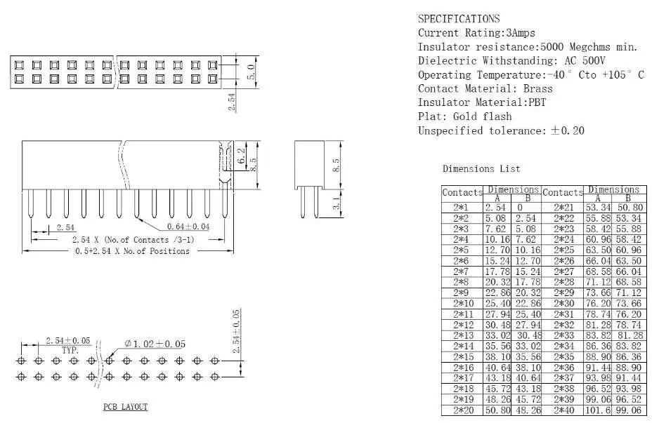 5 шт. x 2,54 мм двухрядный прямой штыревой разъем PCB 2x 2/3/4/5/6/7/8/9/10/11/12/13/14/15/16/17/18/20/25/40pin
