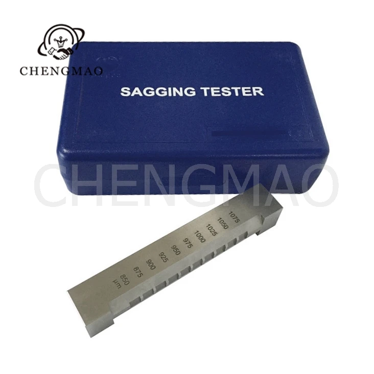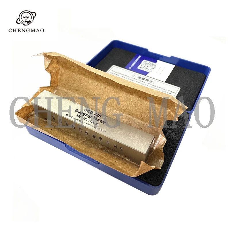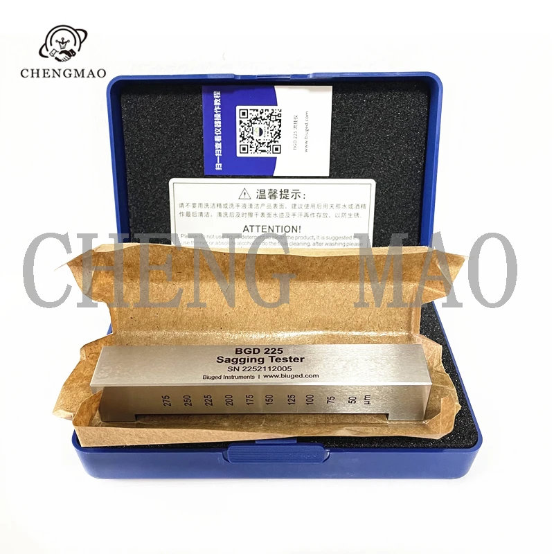 BGD 225 тестер провисания произведенный нашей компанией в соответствии с спецификацией GB/T 9264 и ASTM D 3730 они сделаны из коррозионностойкой нержавеющей стали, ширина нанесения составляет 75 мм при 6 мм на провисание, И зазоры разделяются пространством 1 мм в качестве маркировки на каждом провисании для отличительной идентификации каждого провисания.
