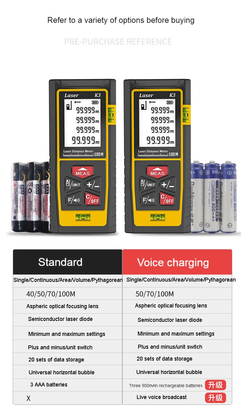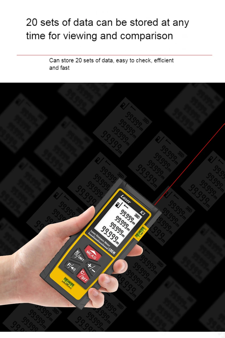 Лазерный дальномер в нашем магазине имеет 120 м, 100 м, 90 м, 80 м, 70 м, 50 м, 40 м и другие дальномеры на ваш выбор. Наш лазерный дальномер разработан специально для точного измерения расстояния. Дальномер различных типов может хранить 20 ~ 120 наборов данных соответственно. Наслаждайтесь покупками!
