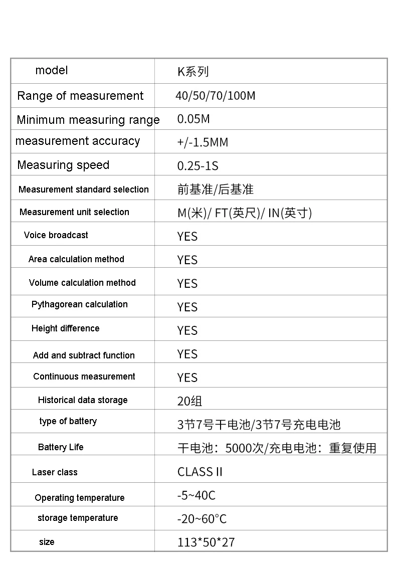 Brand NameYPAYModel Numbertiand2OriginMainland ChinaCertificationCEPower TypeRechargeableMeasurement AccuracymmMeasurement unit100000015Each pack1Ranging distance40M-120MBatteriesnot included