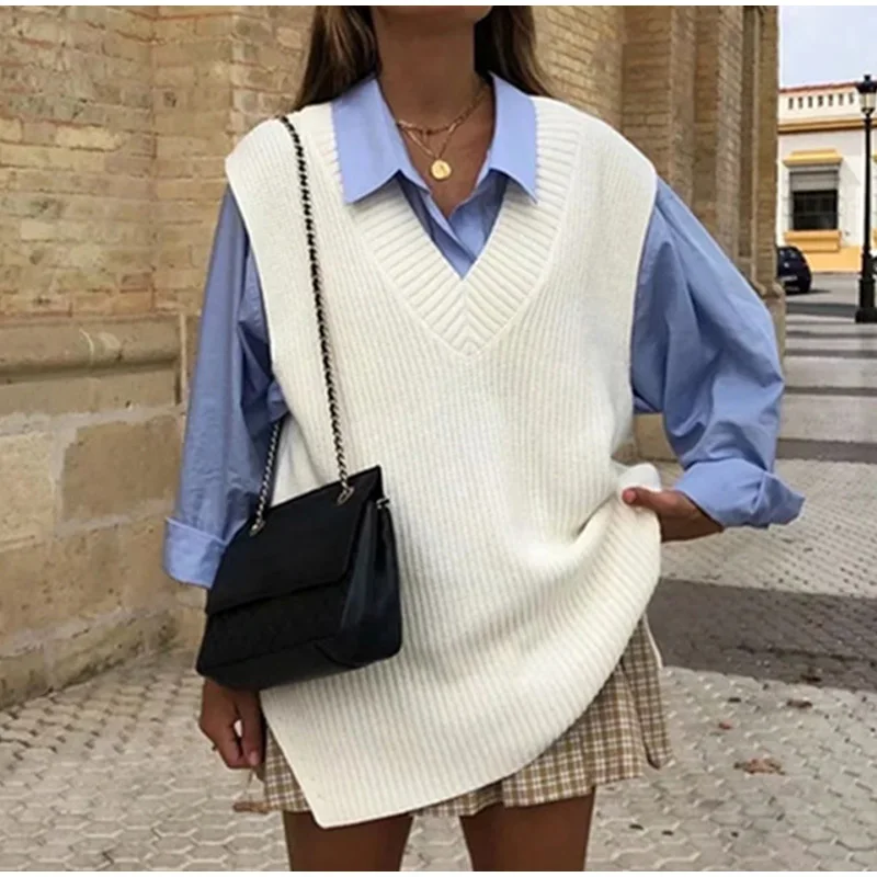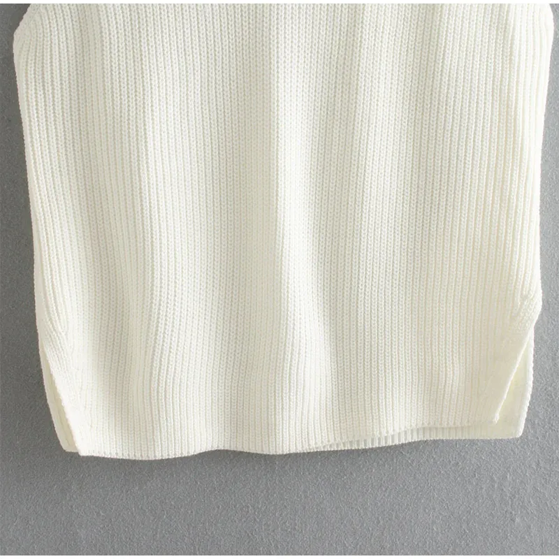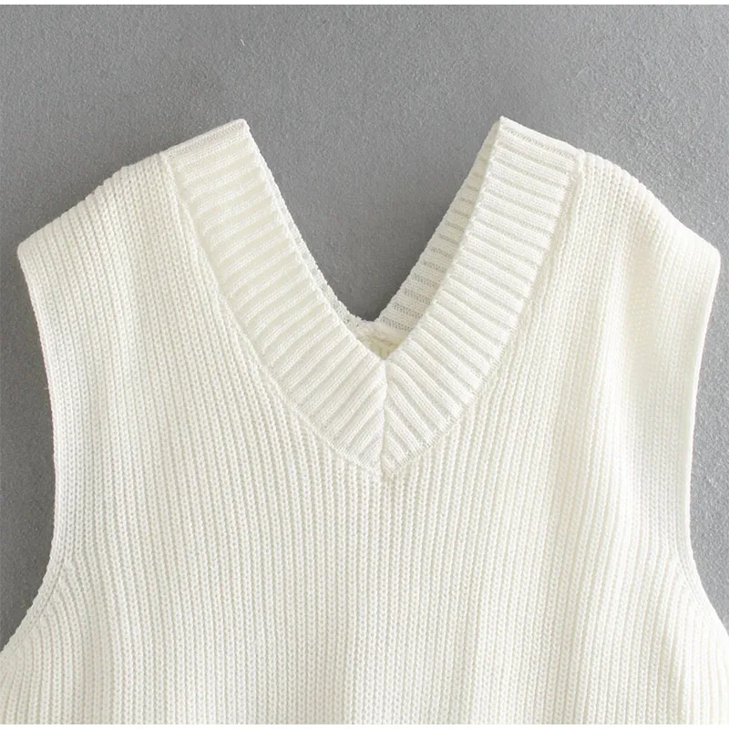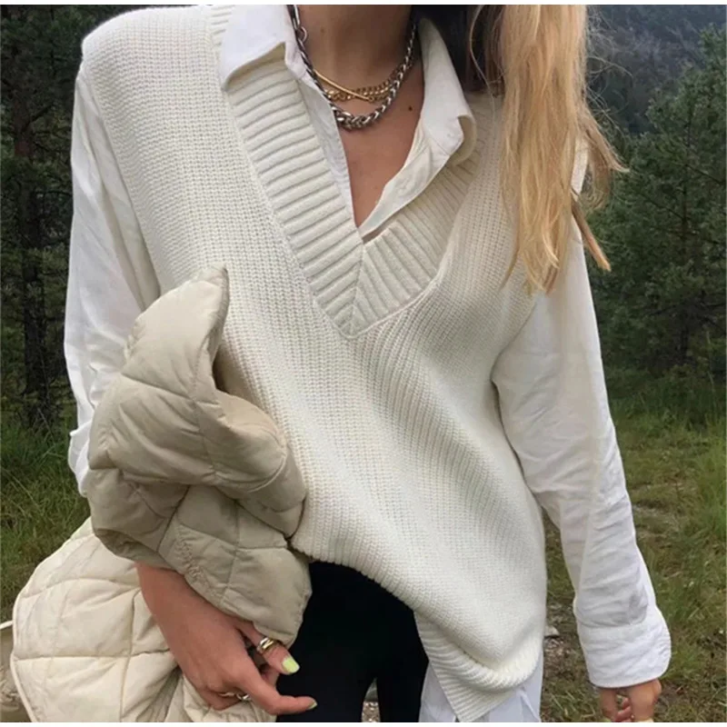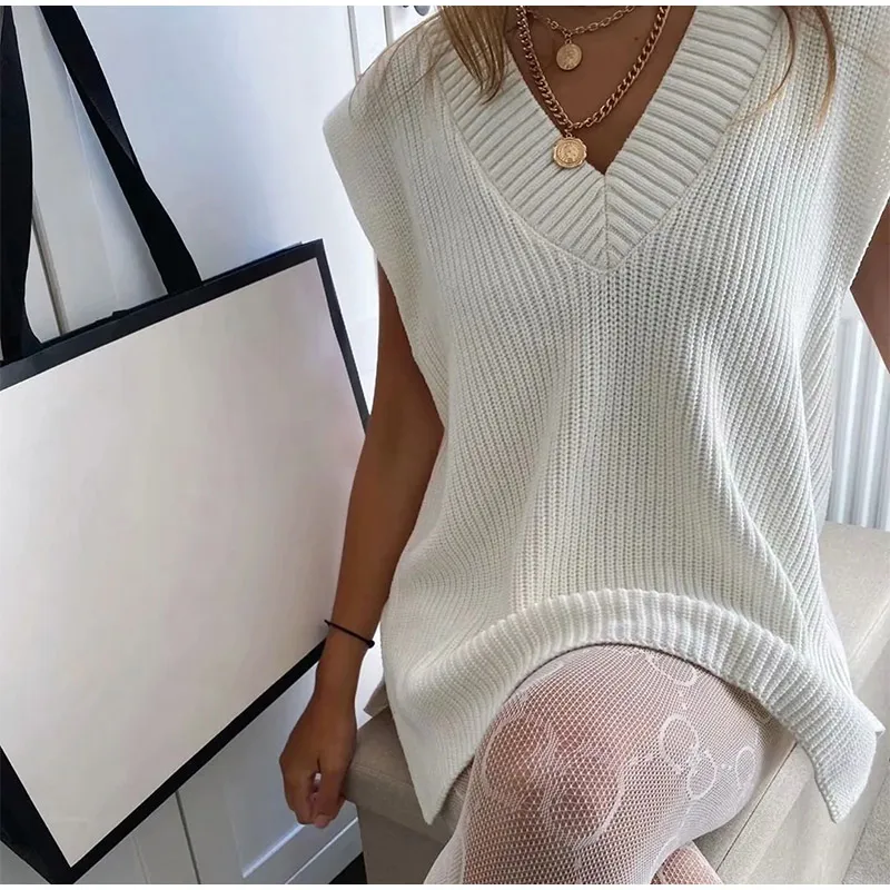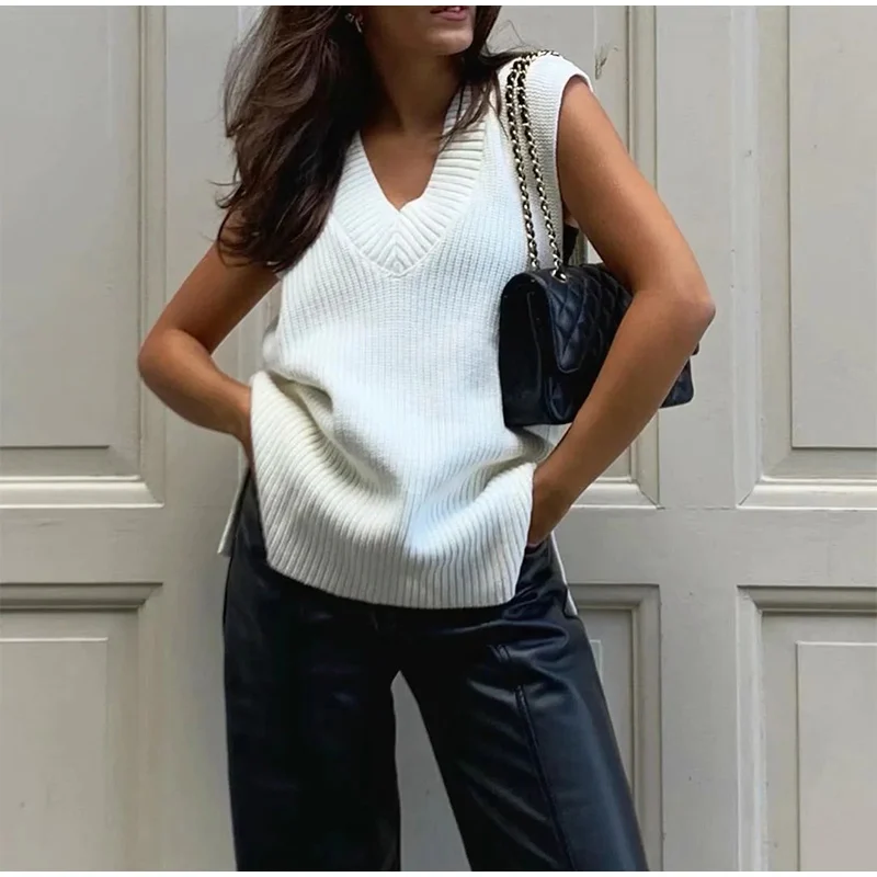 Осенние белые плотные вязаные женские жилеты с v-образным вырезом без рукавов с разрезом, женские свитера, теплая однотонная Повседневная универсальная женская одежда