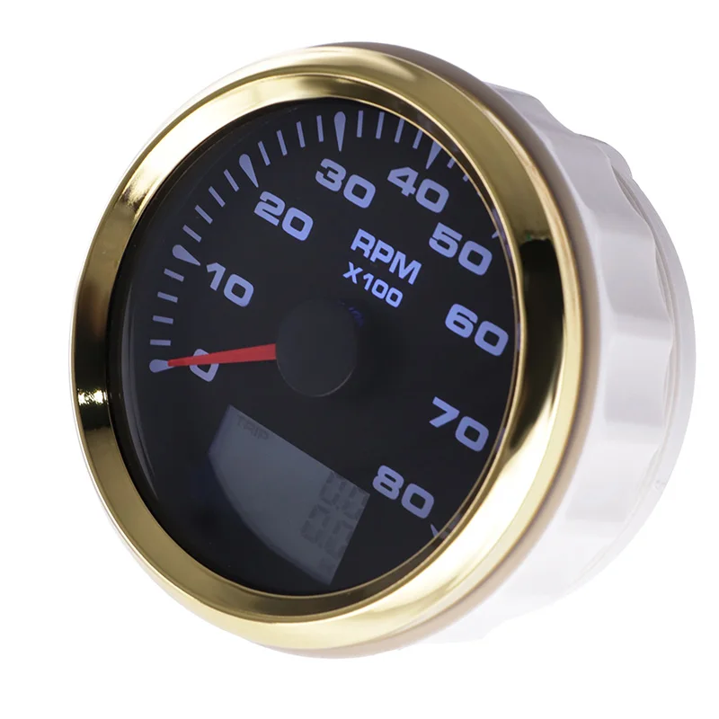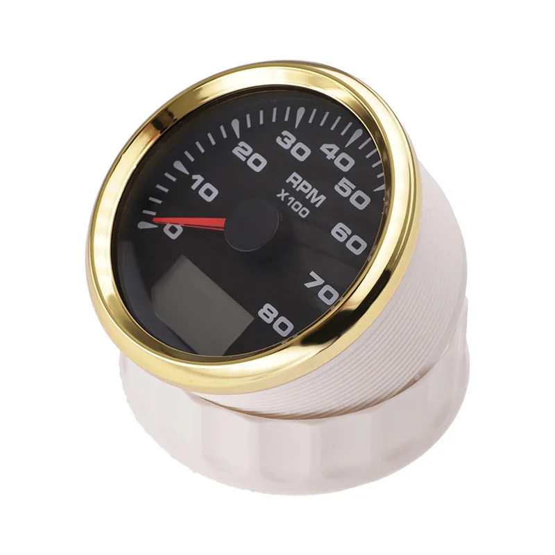 8000 об/мин судовой Тахометр Морской Тахометр метр с ЖК-дисплей счетчик моточасов 7 цветов Подсветка золотой рамкой, пригодный для Audi A4 BMW E46 85 мм