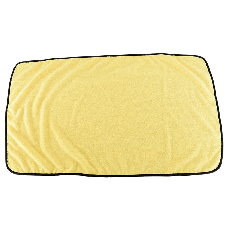 Нанесите полотенце на поверхность или Сложите. Проведите над плоскими арками как капюшон и крыша, чтобы удалить большую часть воды. Используйте круговое движение, чтобы удалить воду с задней и боковой стороны транспортного средства. Отожмите излишки воды по мере необходимости.