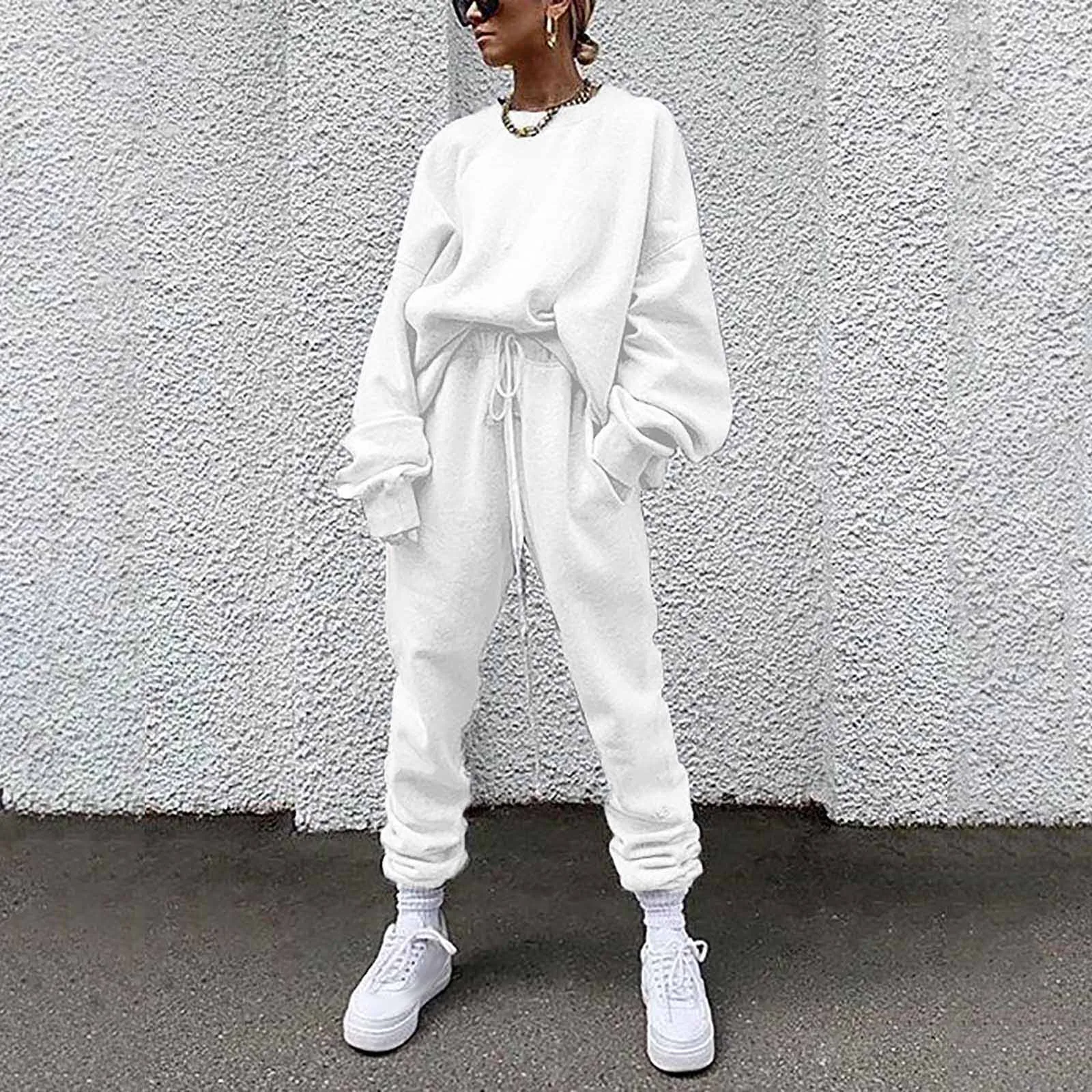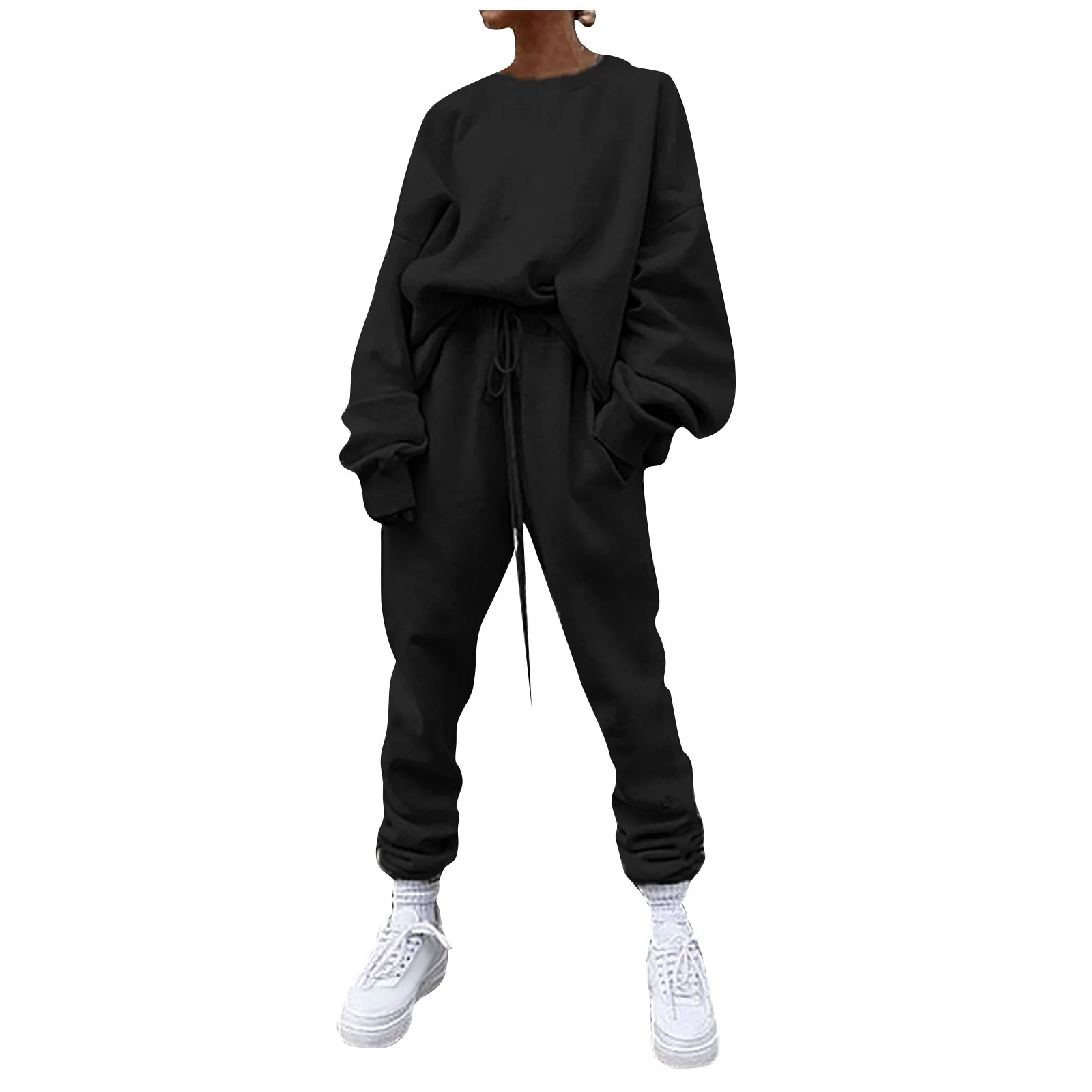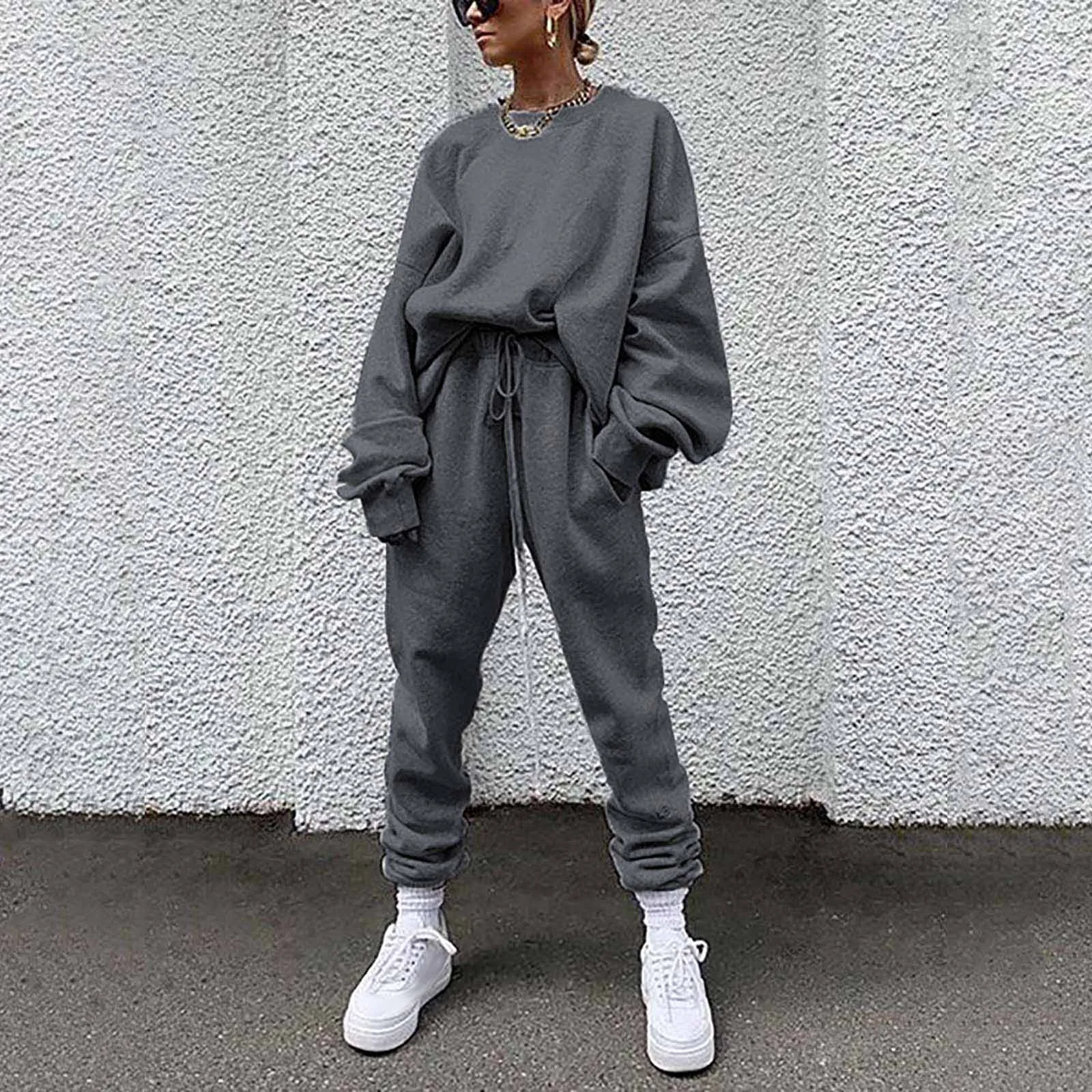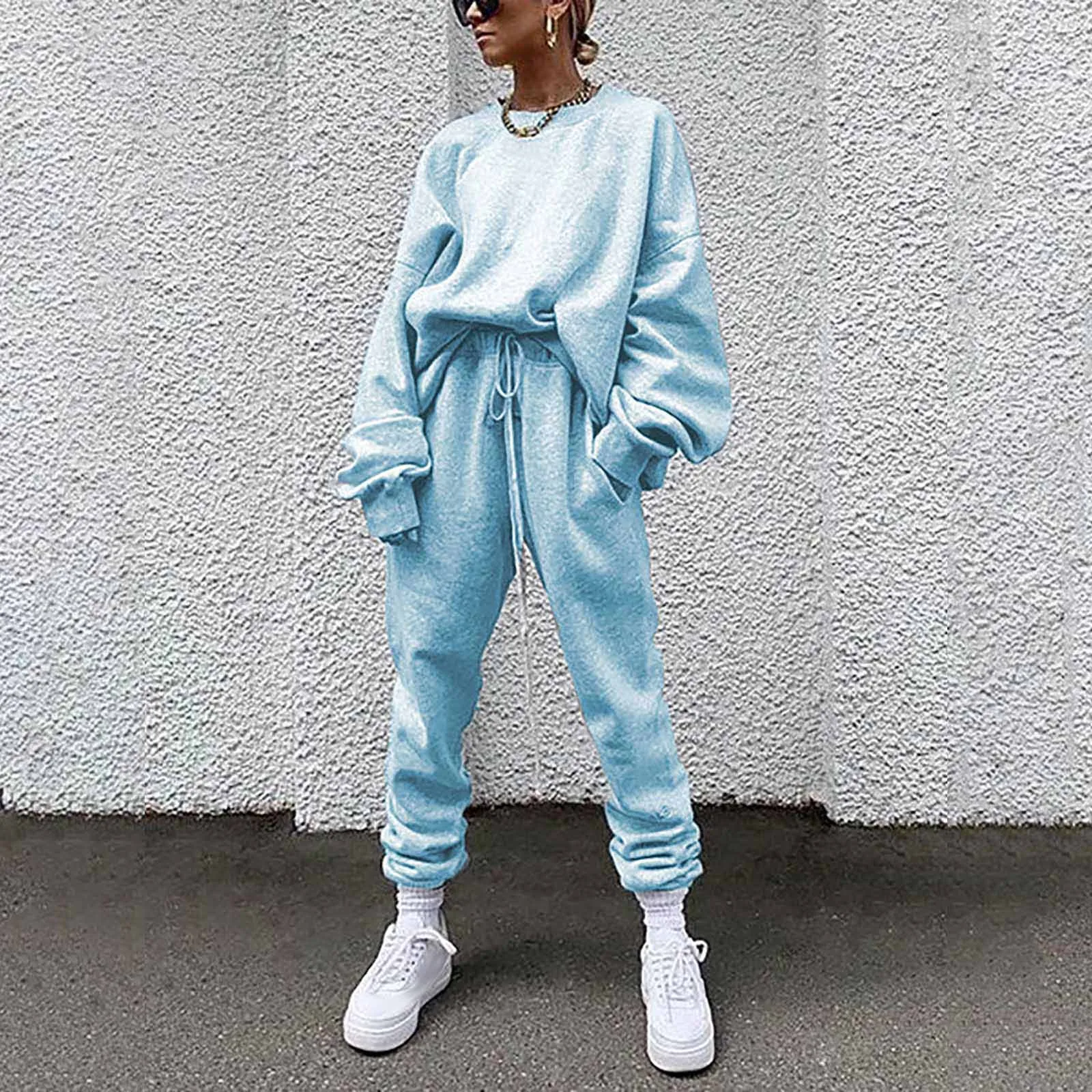 Женский однотонный свободный свитер для отдыха, спортивная одежда, костюм с длинными рукавами