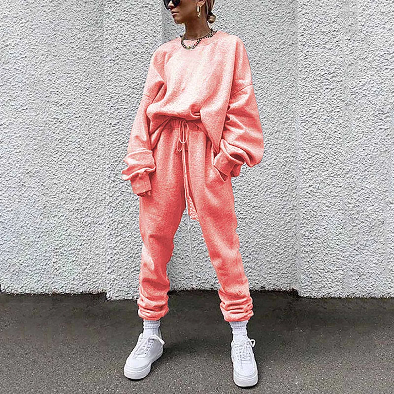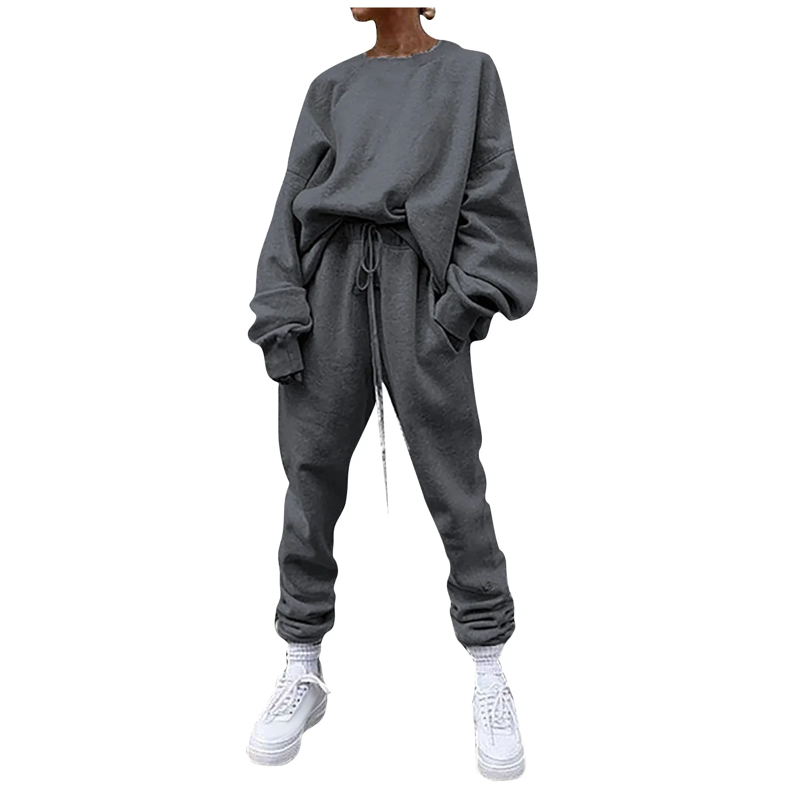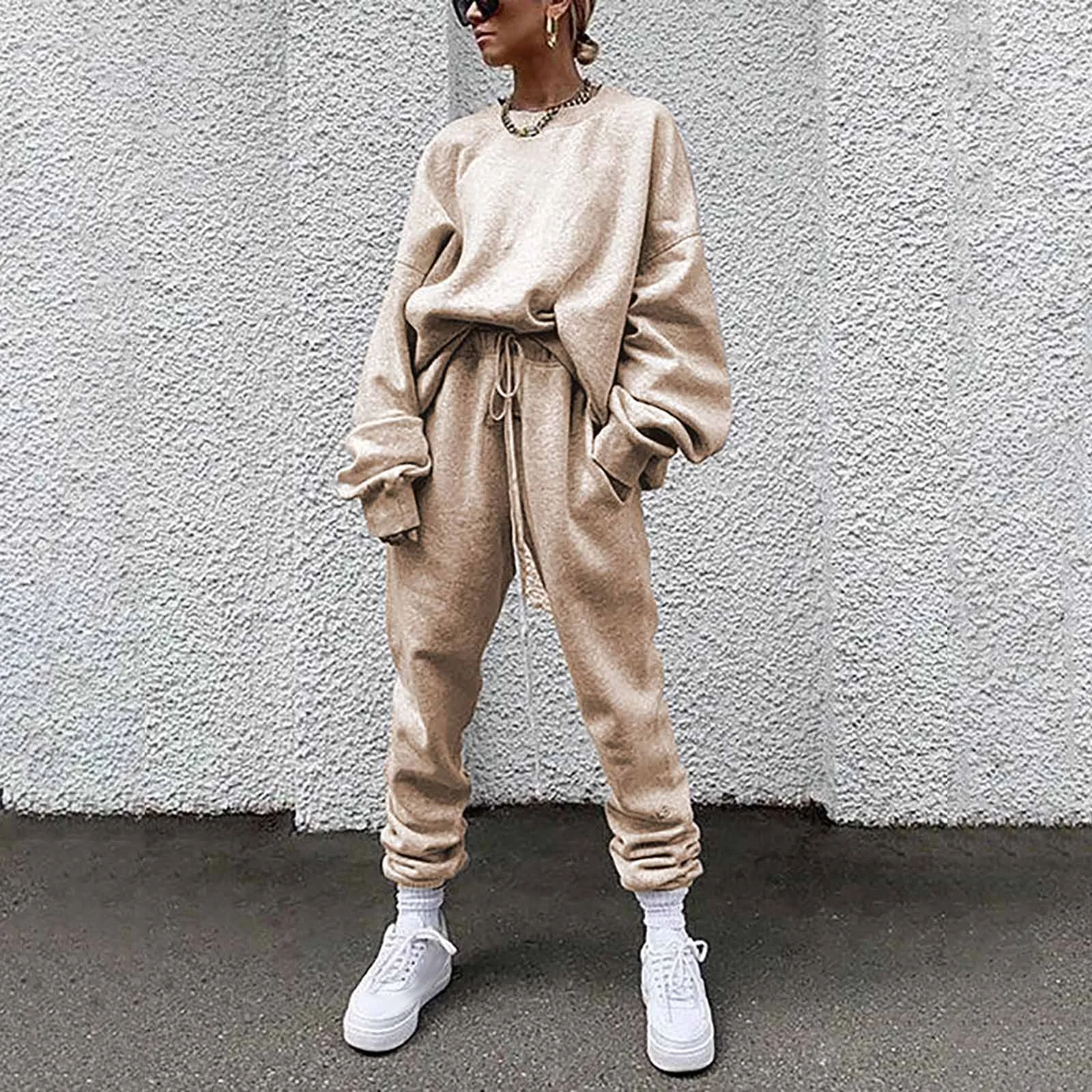 Женский однотонный свободный свитер для отдыха, спортивная одежда, костюм с длинными рукавами
