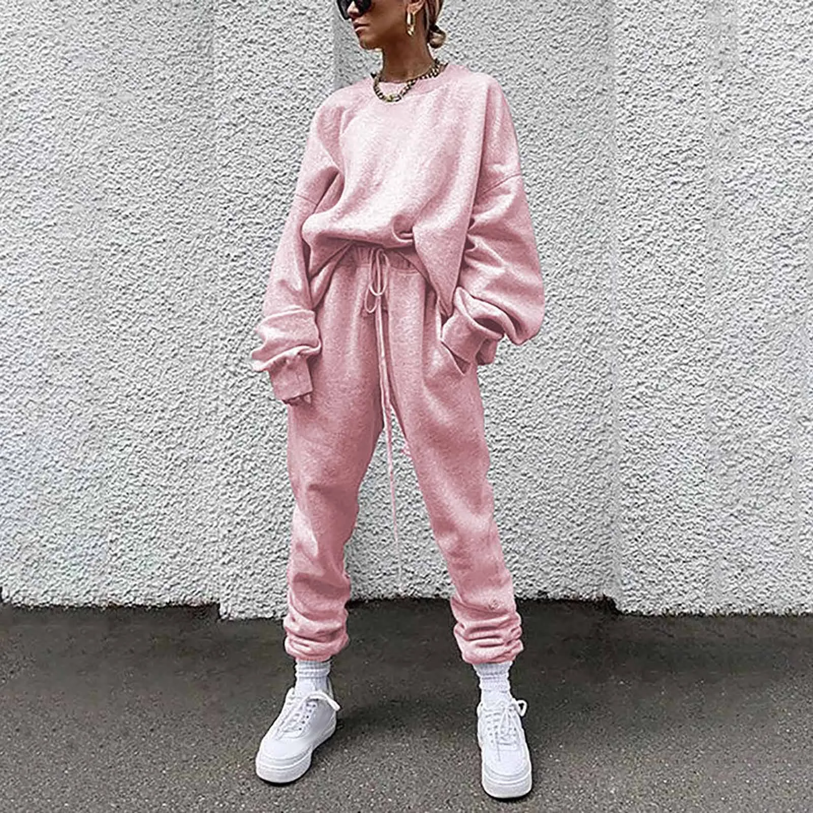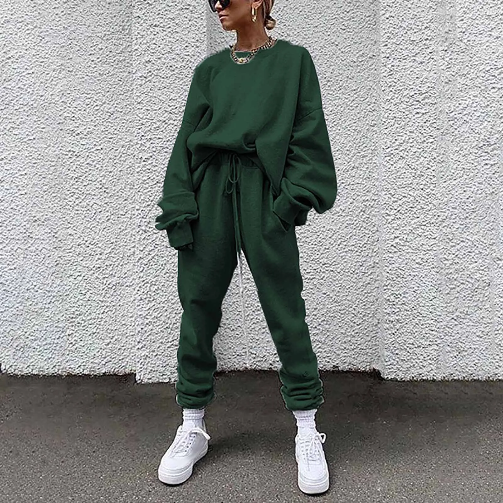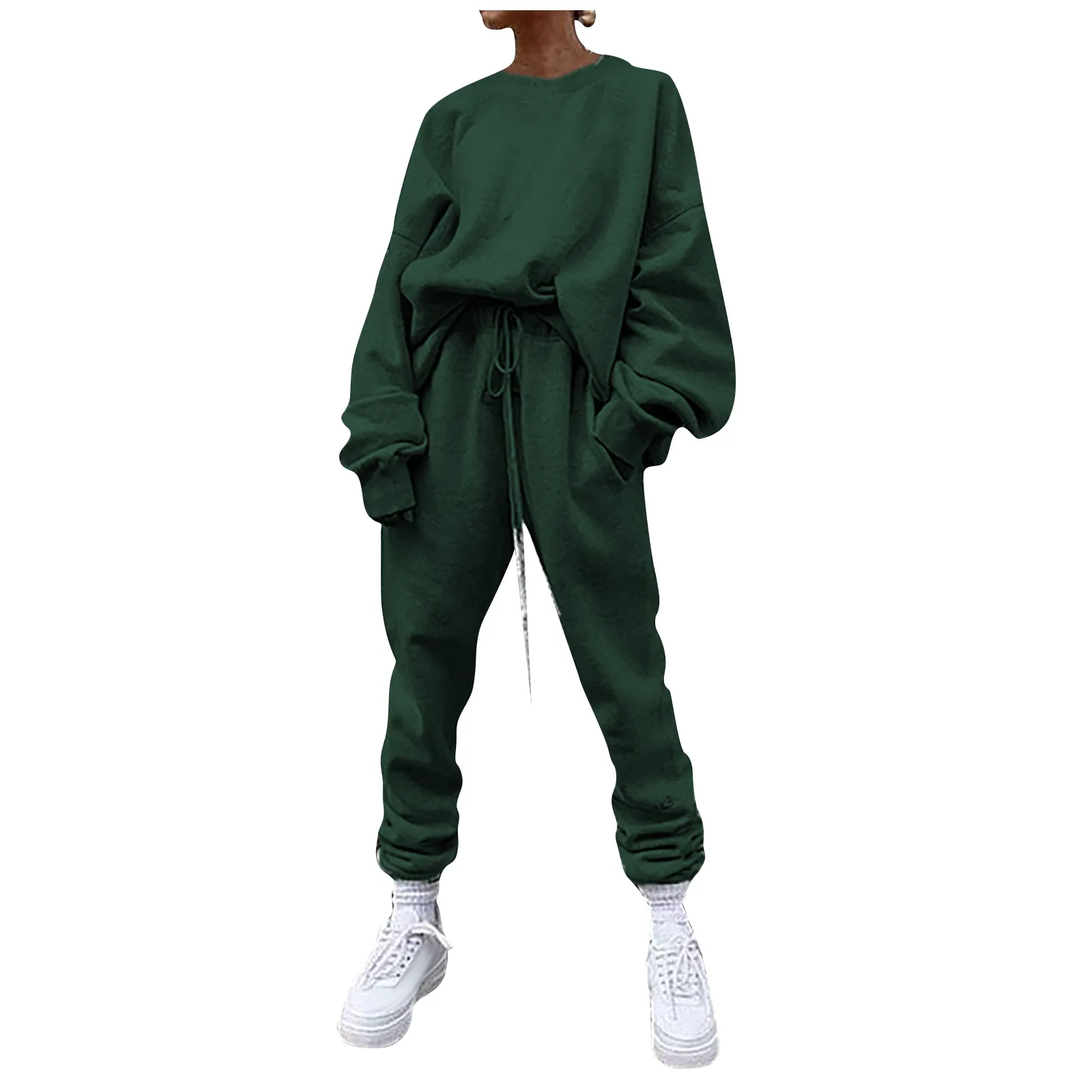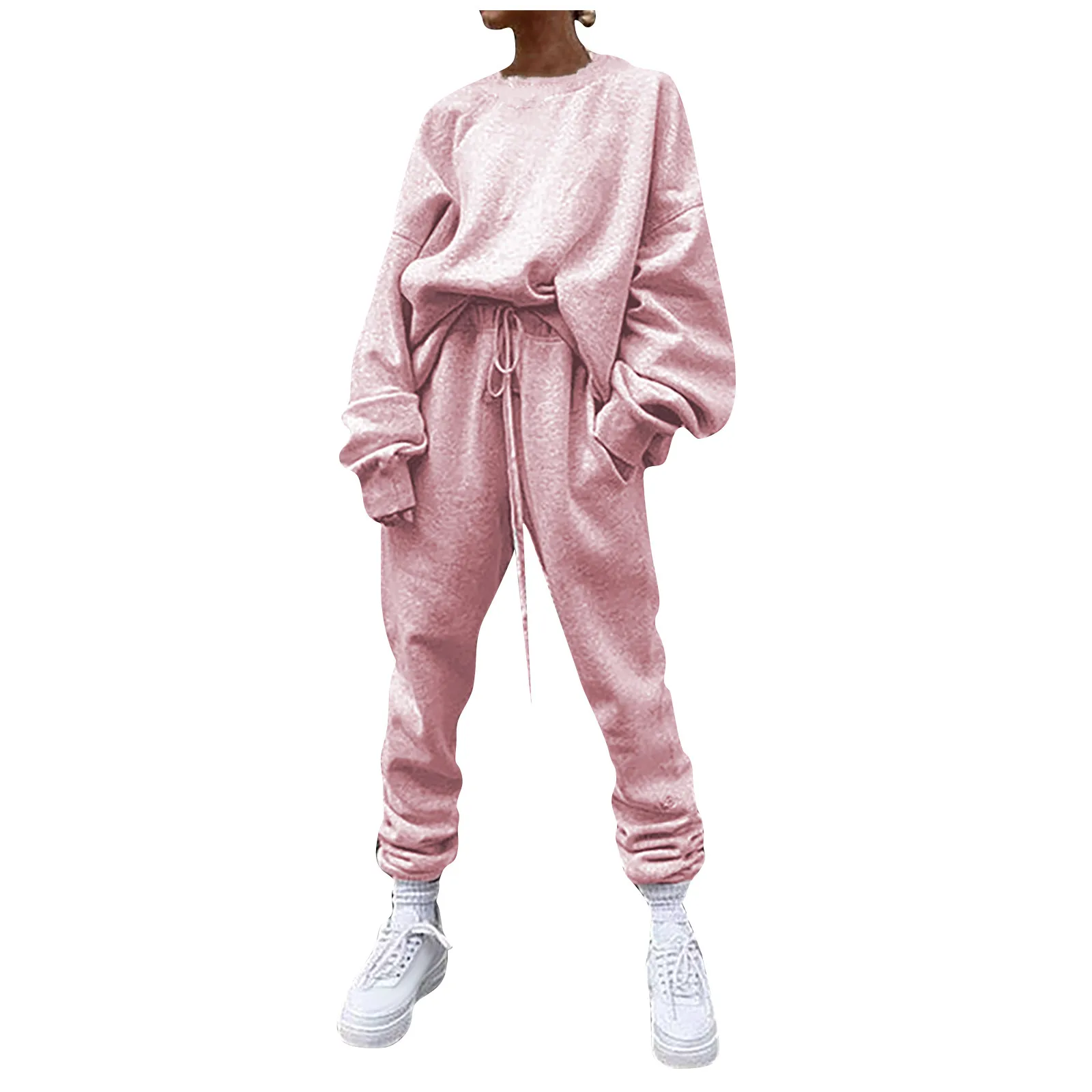 Женский однотонный свободный свитер для отдыха, спортивная одежда, костюм с длинными рукавами