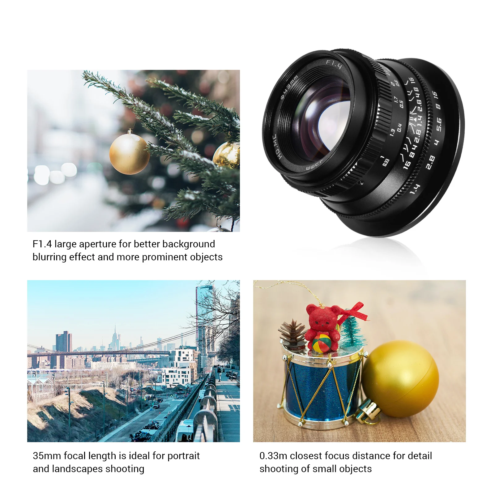 Большая диафрагма F1.4 обеспечивает лучшее размывание фона и мягкий эффект, что сделает съемку объектов более заметной.