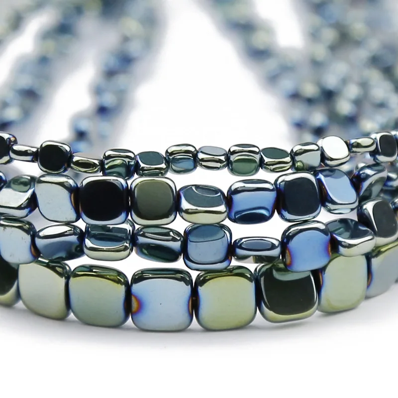 UPGFNK натуральный зеленый камень гематит 4/6/8 мм плоские трубы квадратного сечения прокладки свободные бусины для изготовления ювелирных изделий Diy браслет ожерелье аксессуары
