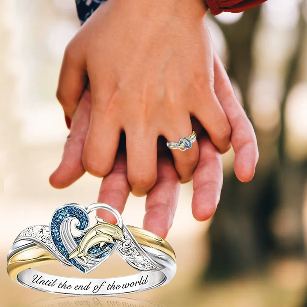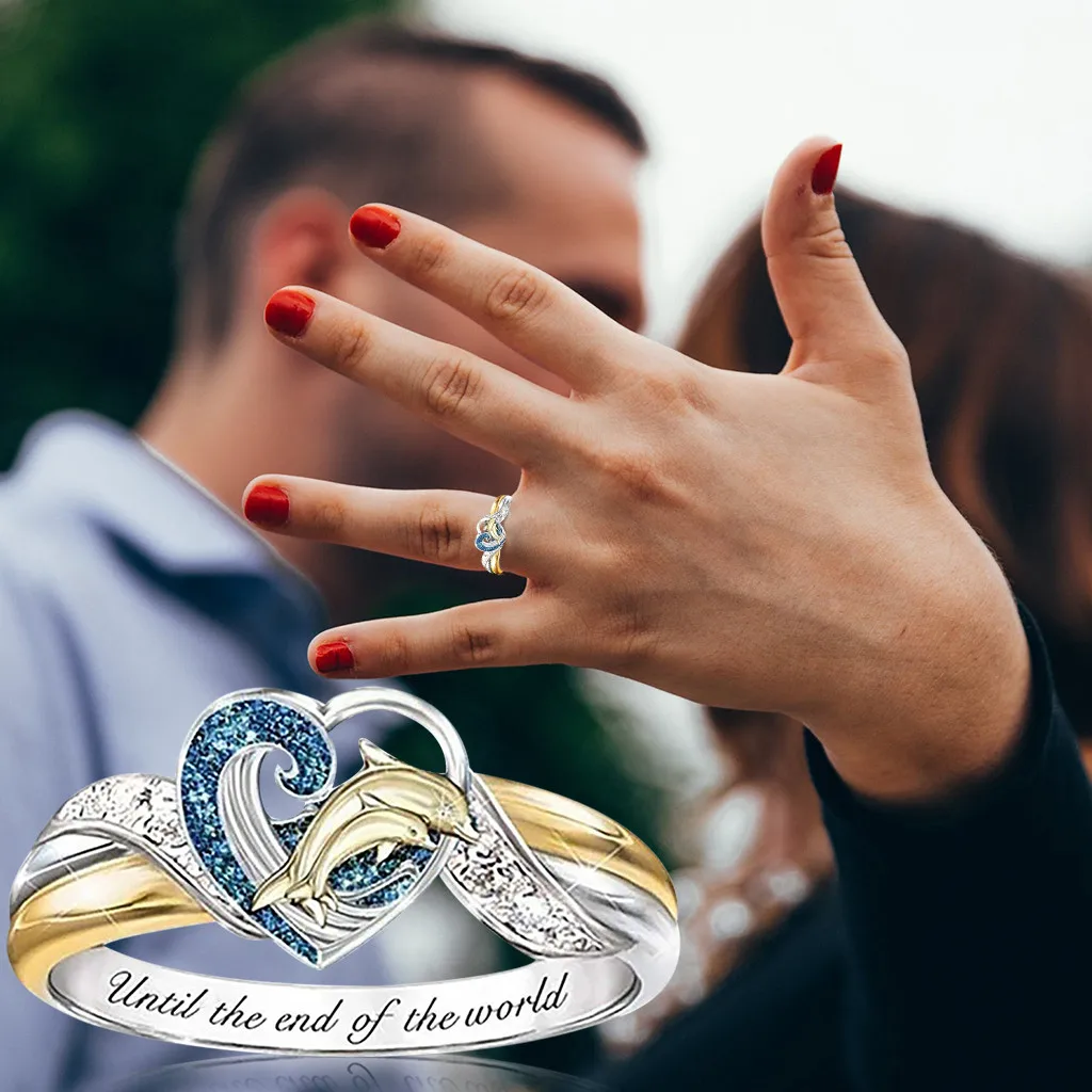 Модное кольцо с дельфином для женщин, свадебные вечерние ювелирные изделия, размер 6-10