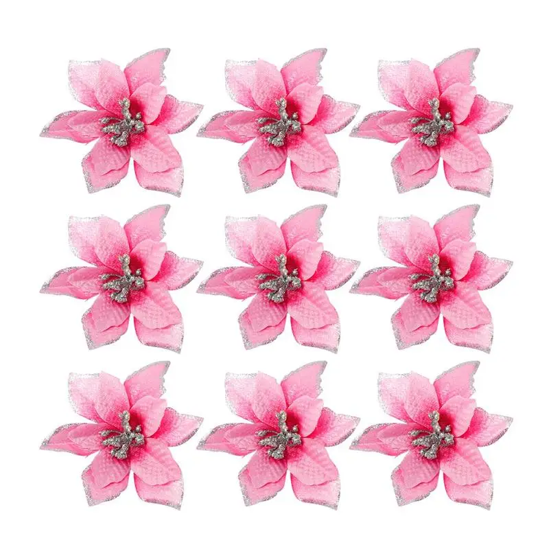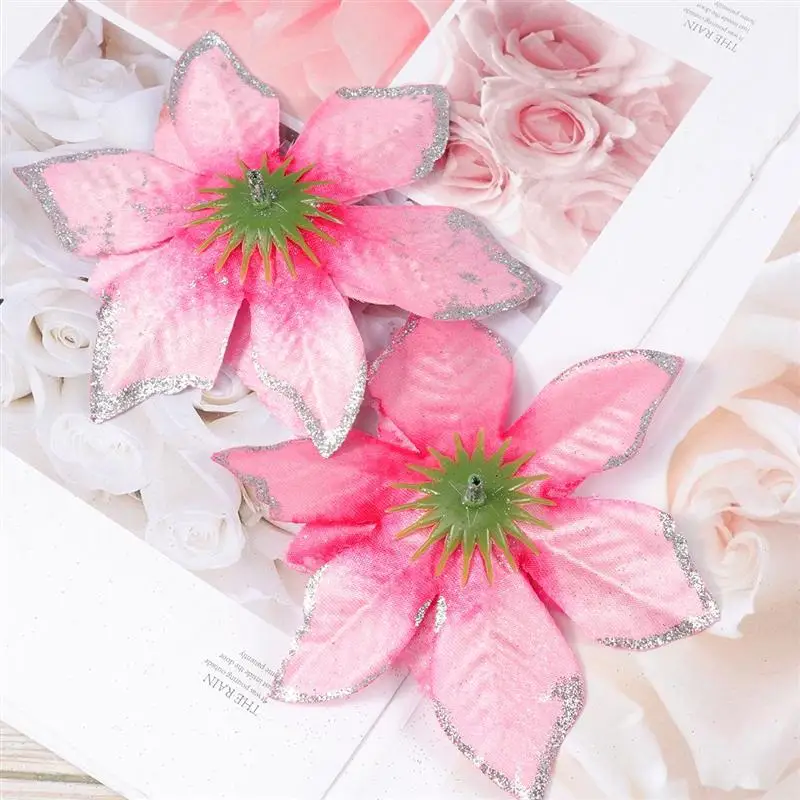24 шт Рождественский цветок имитация золотой порошок цветок Рождественская елка украшение цветок розовый