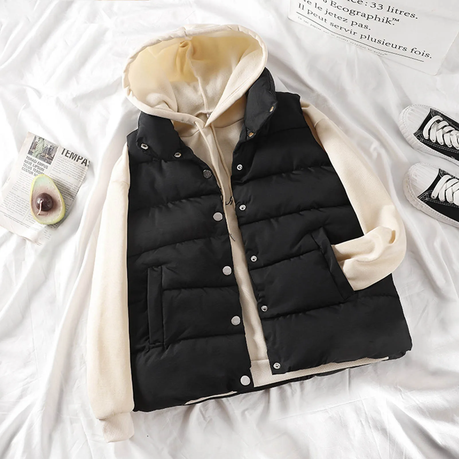 Жилет имеет дизайн без рукавов, чтобы ваши руки свободно двигались.