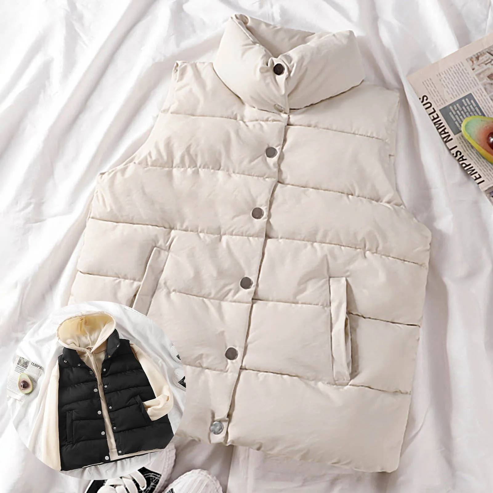 Женский жилет без рукавов на пуговицах с карманами на осень и зиму, теплое пальто