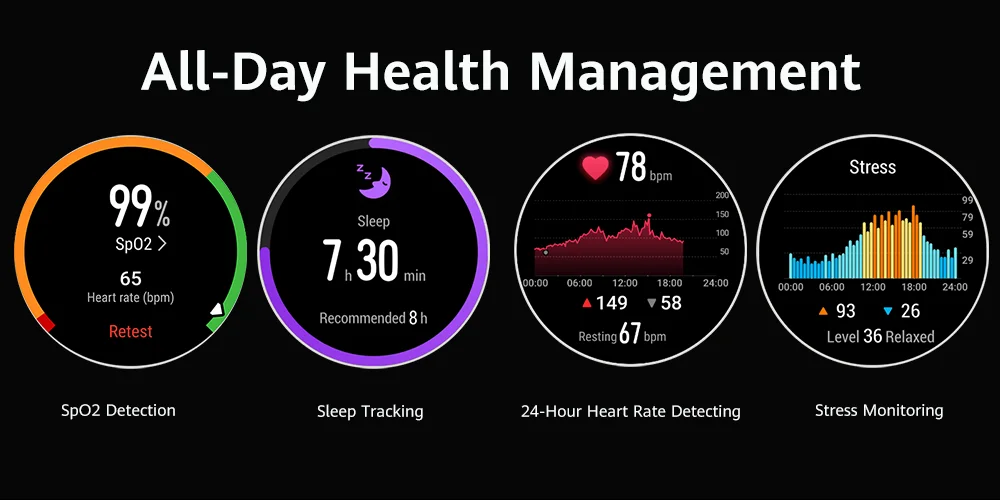 Модернизированные светодиоды и внешнее стекло премиум класса на задней панели сотрудничают с интеллектуальным алгоритмом AI, эффективно снижая энергопотребление, точно измеряя SpO2 или частоту сердечных сокращений, что обеспечивает вам более длительную защиту с помощью одной зарядки.