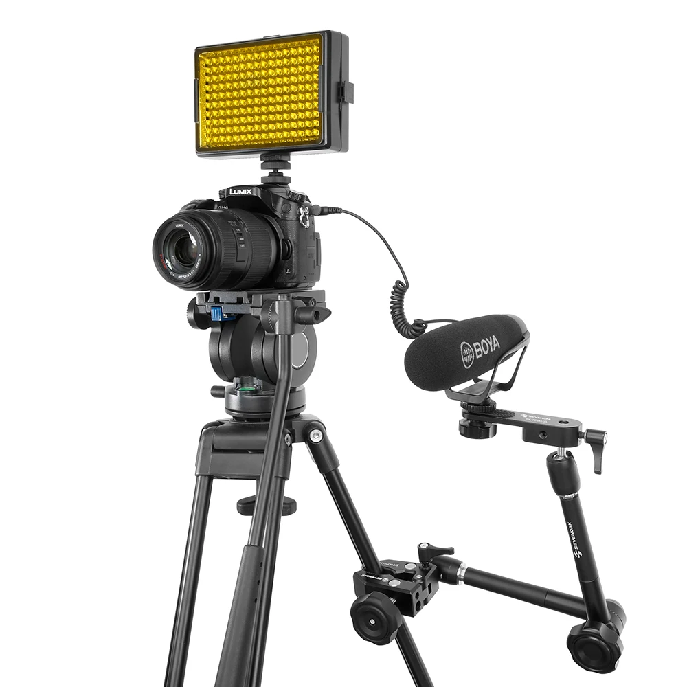 SK-ARM15B кронштейнКронштейн имеет конструкцию быстроразъемной пластины, которая позволяет надежно устанавливать камеры или другие аксессуары с резьбовым отверстием 1/4 "-20,И другой конец может прикрепить волшебную руку (доступна отдельно) для использования.Основные характеристики продукта:• Универсальный кронштейн с резьбой 1/4 ''-20• Плотно удерживайте устройство• Алюминиевая конструкция
