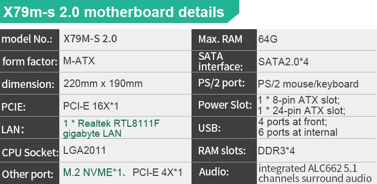 Наш комплект материнской платы включает материнскую плату, 1 * CPU и 4*4GB RECC Ram.