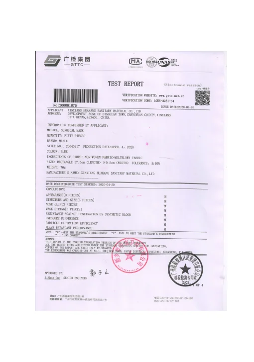 Единственный способ-проверить настоящий отчет о тестировании. Проверьте данные BFE, чем выше, тем лучше. Если нет отчетов об испытаниях, независимо от того, насколько хорошие продукты описаны, все еще недостаточно надежные. Потому что, если используется низкое качество и дешевые материалы, цены могут быть очень низкими и не могут защитить людей эффективно. Мы предлагаем нашим клиентам отчеты по испытаниям, так как мы уверены в нашем качестве.
