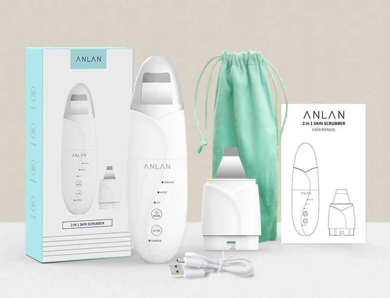 Название продукта: ультразвуковой Скруббер кожи Материал: АБС + нержавеющая сталь Размер: 180*52*18 мм Вес: около 133 г Время зарядки: около 2 часов Емкость аккумулятора: 500 мА · ч Рабочий ток: 380mA-550mA Напряжение: 3,7-4,2 в Входное напряжение: DC5V/1A Время непрерывного использования: низкий этап-70 минут высокий этап-60 минут Автоматическое отключение: около 10 мин