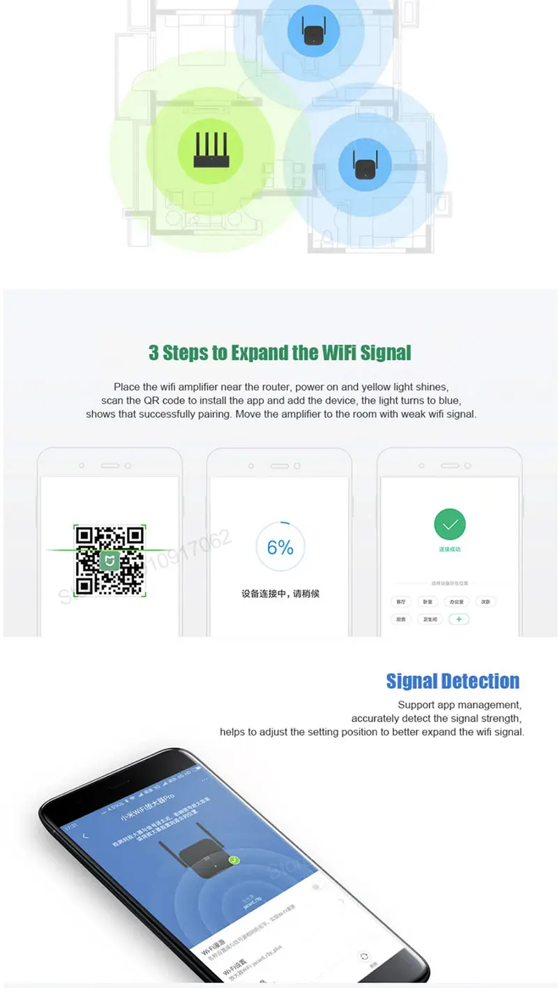 5. Поддержка обнаружения сигнала, через приложение Xiaomi, точное определение силы сигнала, помогает настроить положение настройки, чтобы получить лучшую производительность.