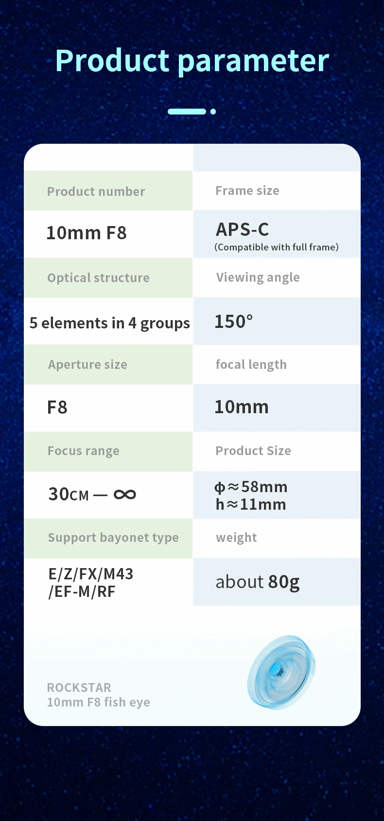 RockStar 10 мм F8 Рыбий глаз объектив ультра широкоугольный фиксированный фокус объектив камеры для Sony E Fuji FX M4/3 Nikon Z Canon M50II M6II M200