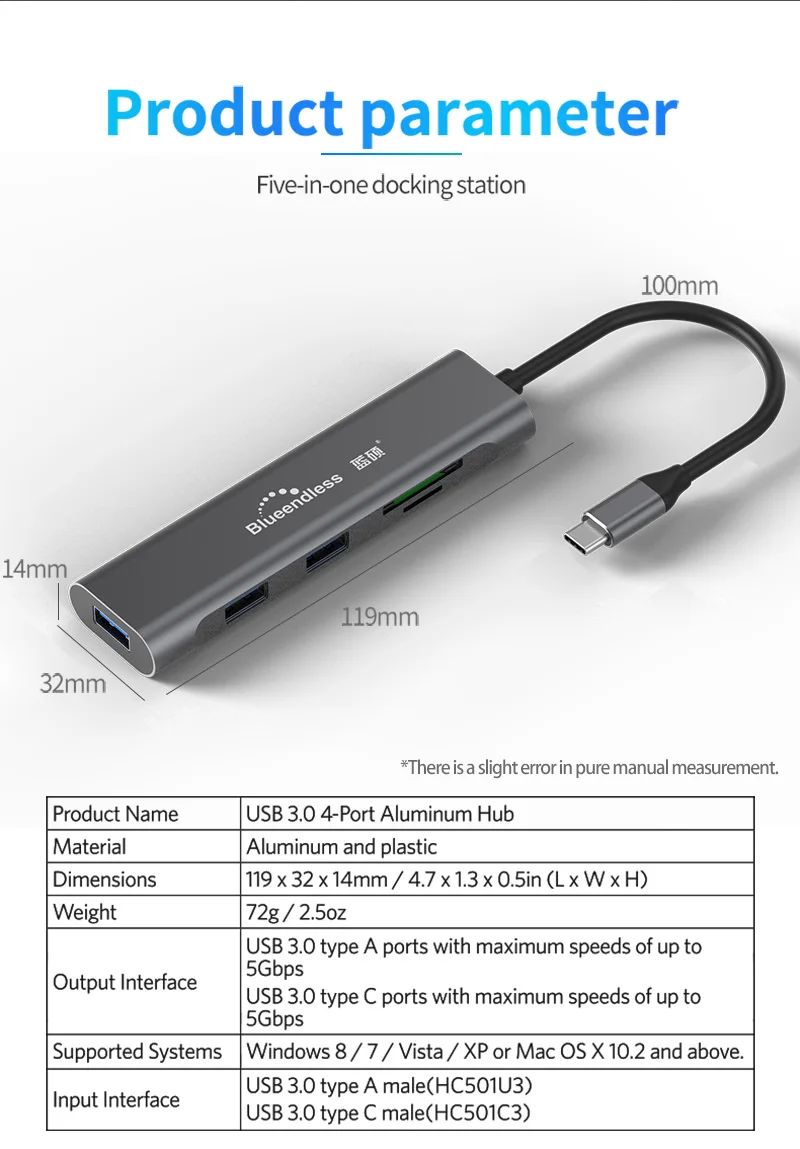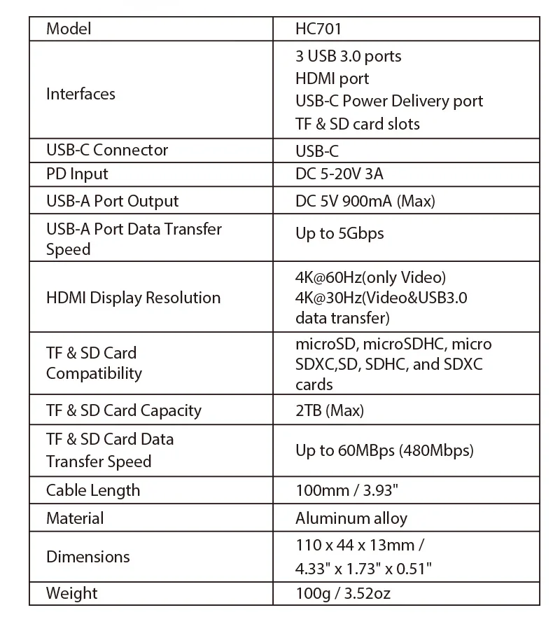 Характеристики: USB3.0 * 3 + TF + SD + PD